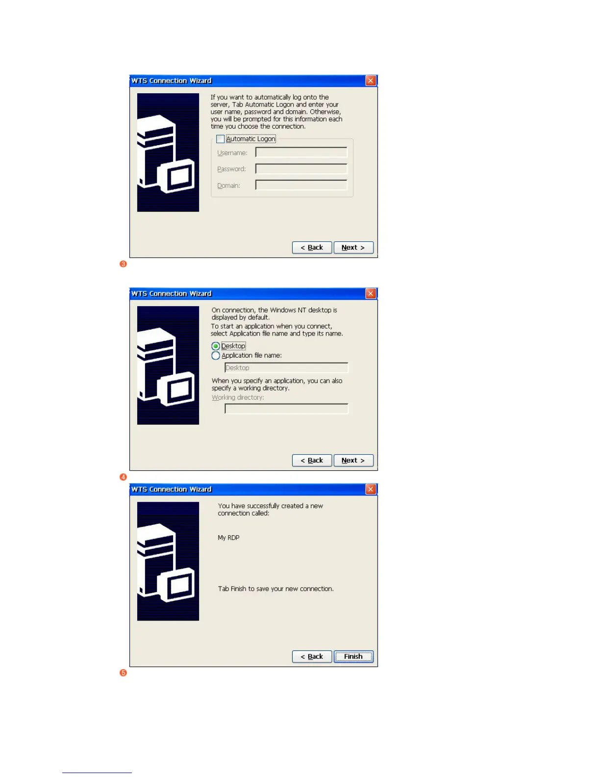 Save the new connection and finish the WTS Connection Wizard.