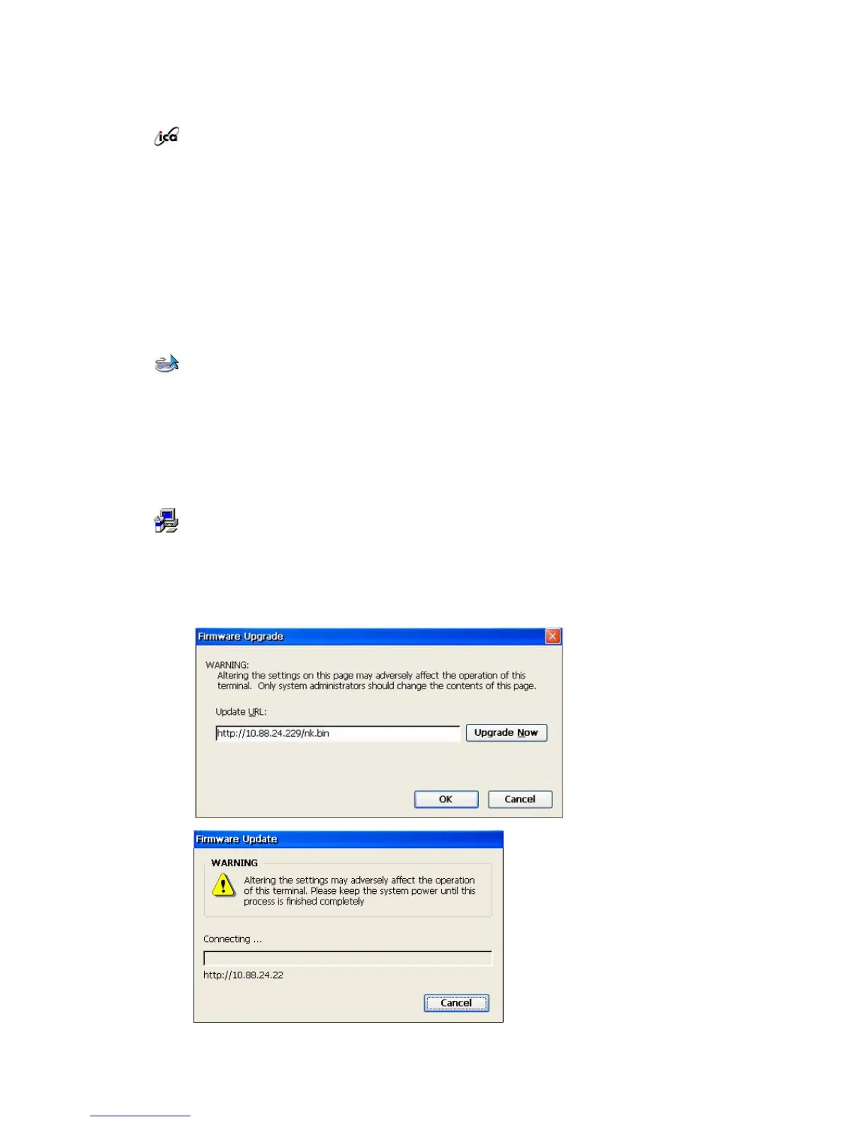 Using the Upgrade item in the Control Panel, you can upgrade your terminal’s firmware.