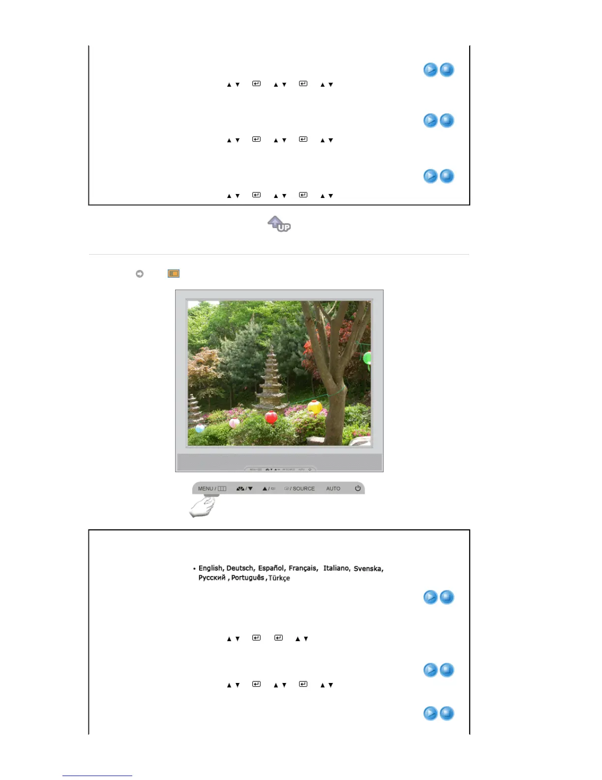 Changes the vertical position of the monitor's entire