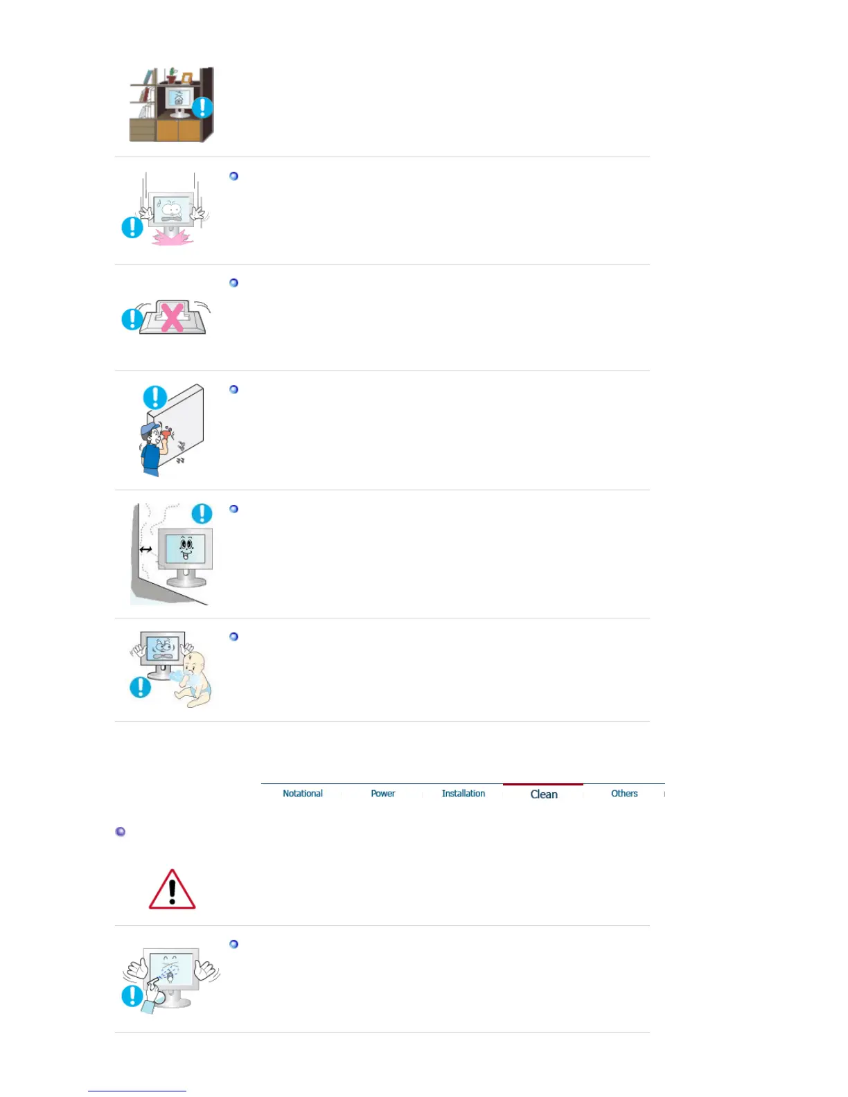 When cleaning the monitor case or the surface of the TFT-LCD screen, wipe with