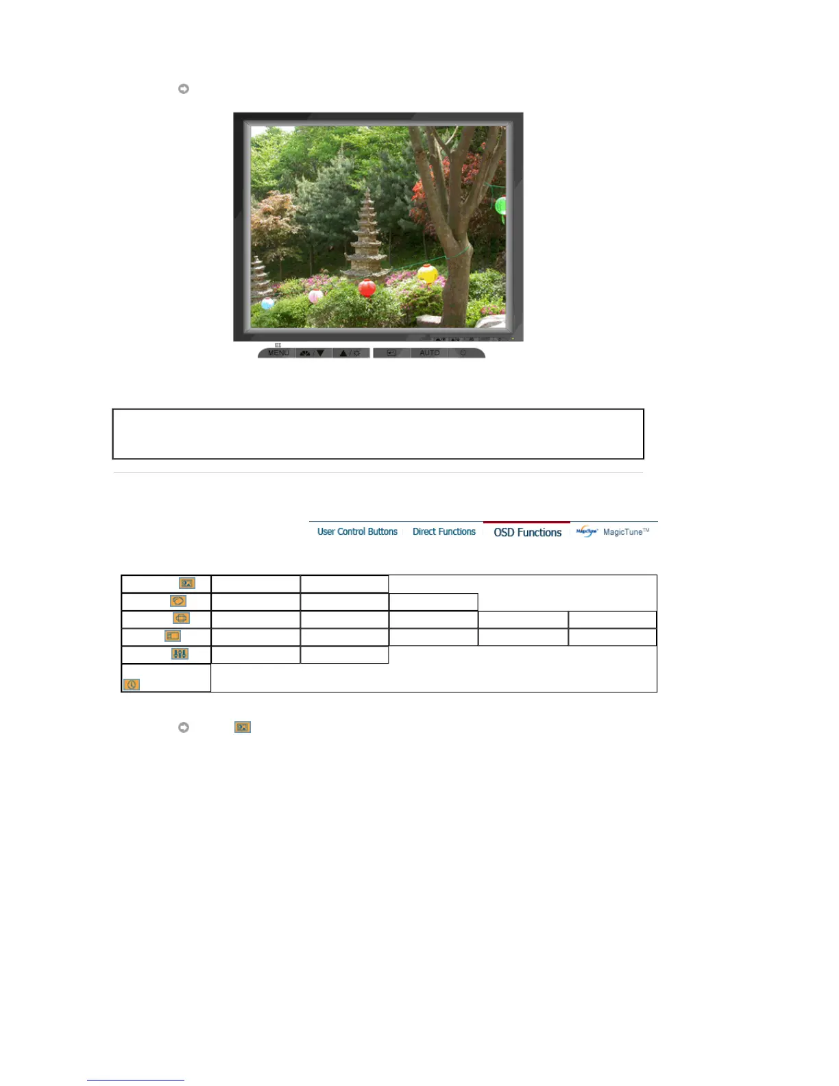 When OSD is not on the screen, push the button to adjust brightness.