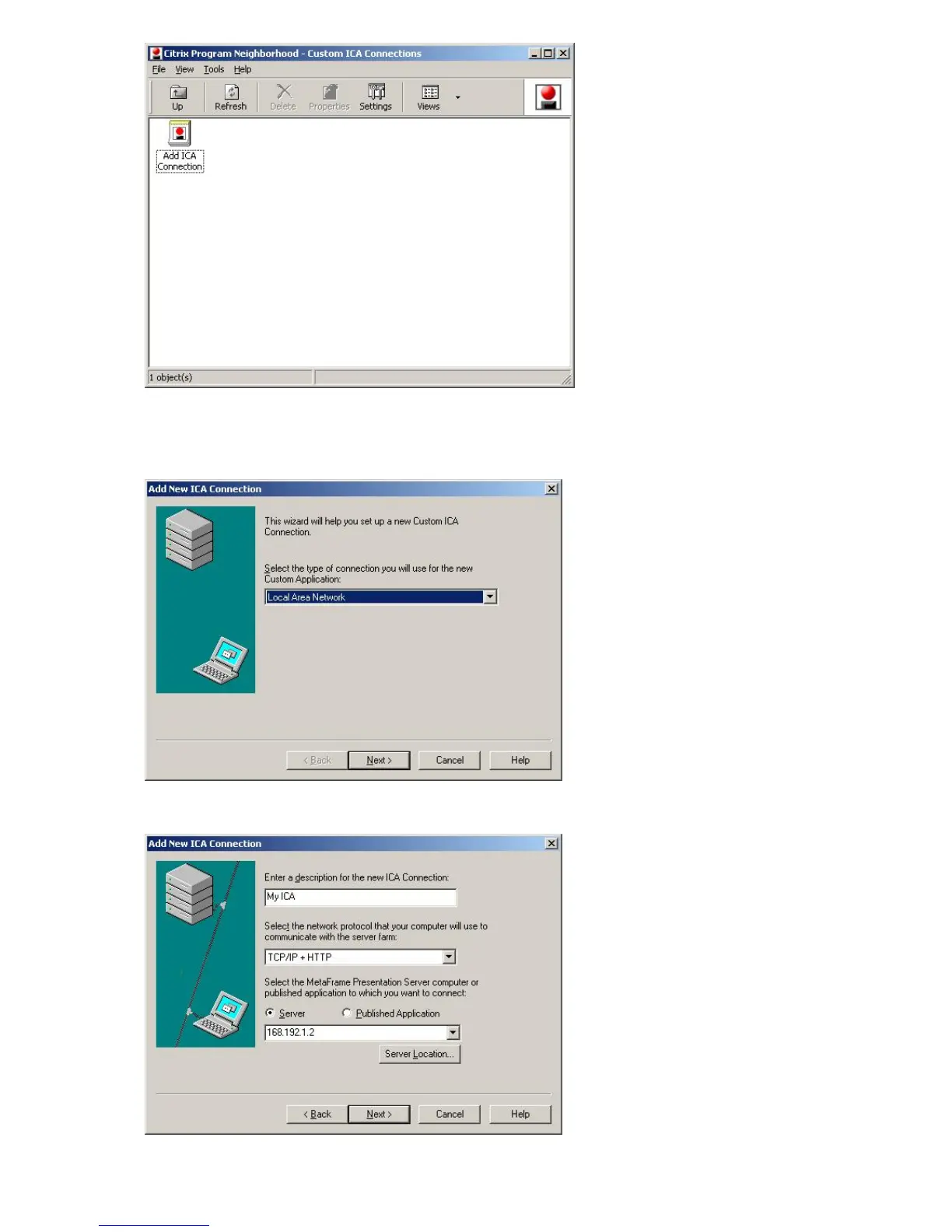 2. Type the connection name and the server name (IP address or DNS name).