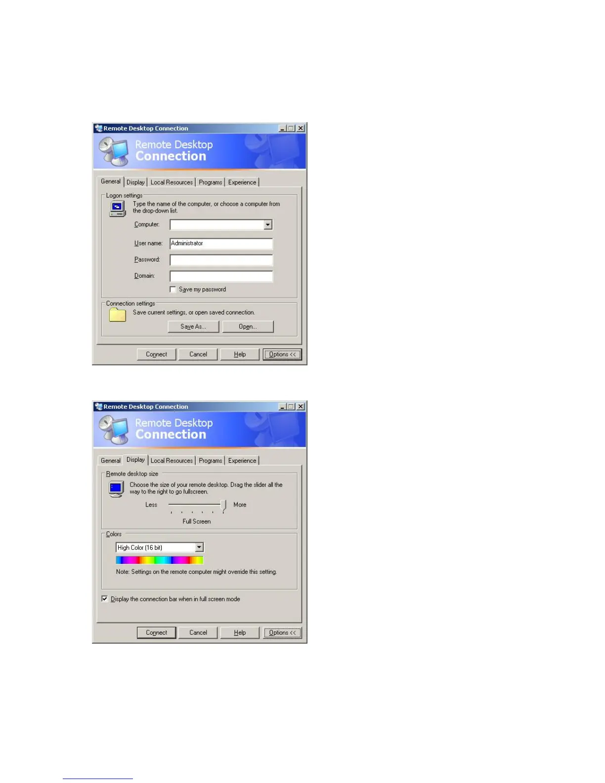 - Display: The Remote Desktop Connection sends and receives compressed screen data. If you set