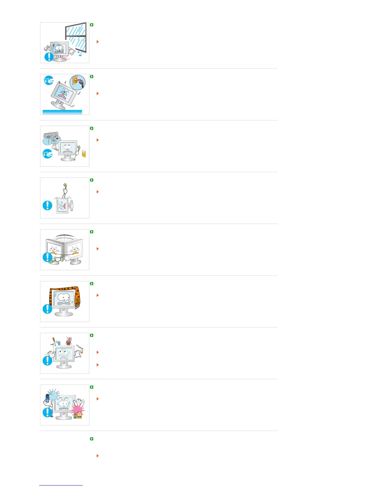 Do not use or keep combustible spray or flammable material near the product.