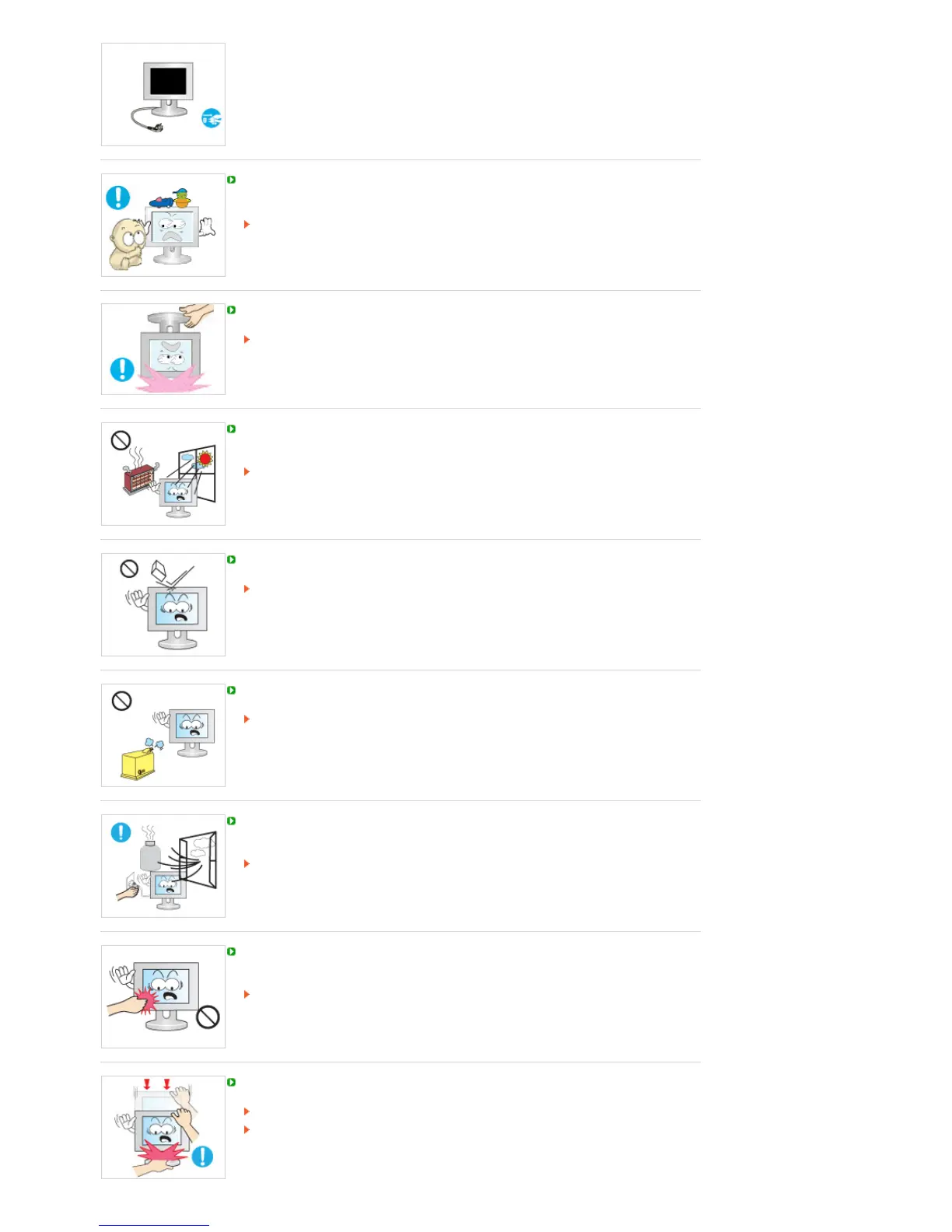 Do not drop any objects onto the product or cause any impact to the product.