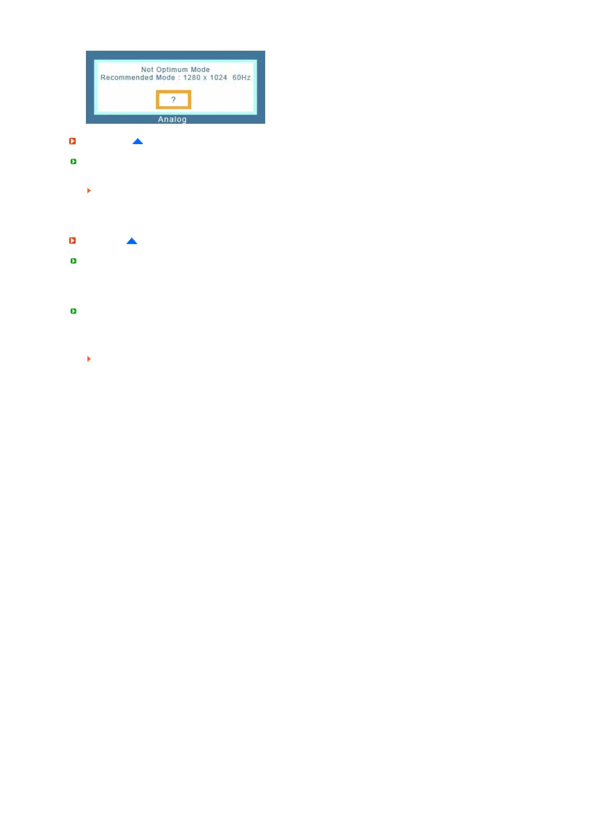 If there is no image on the screen or a "Not Optimum Mode", "Recommended Mode 1280 x 1024 60