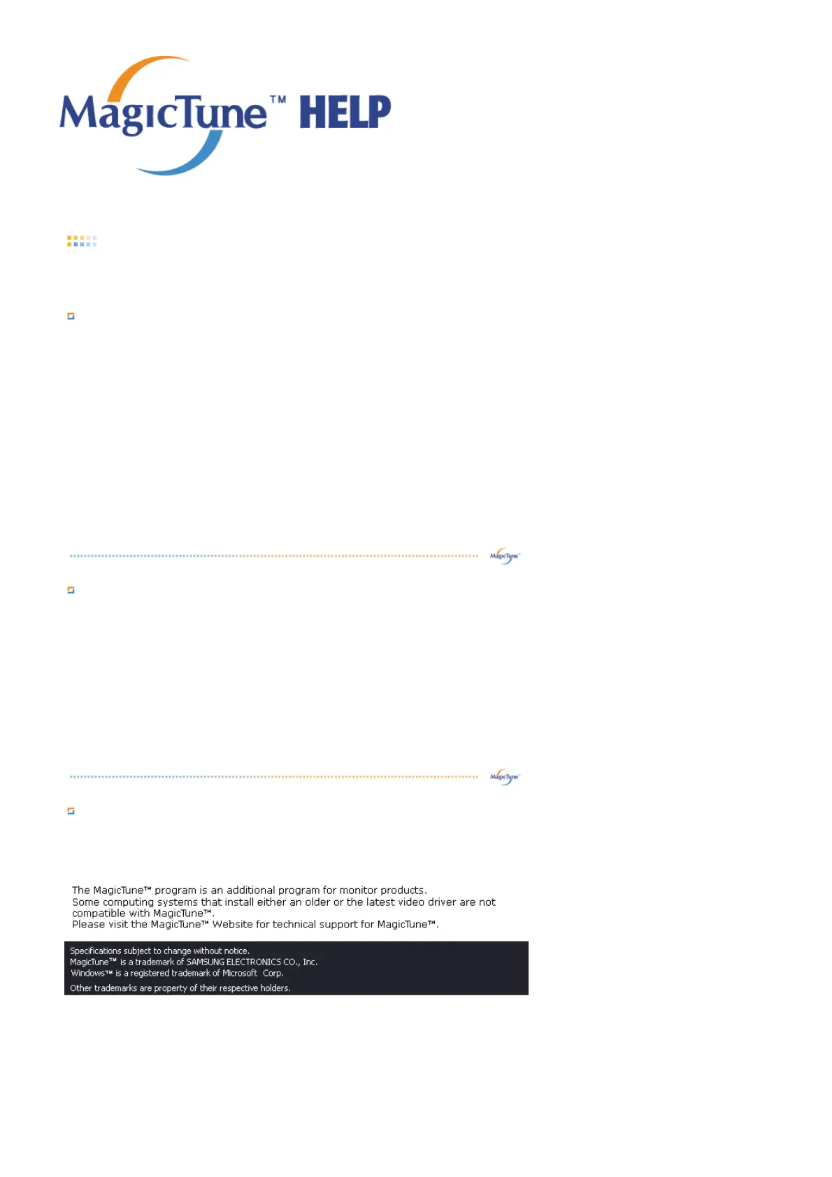 setting the controls of the monitor. MagicTune™ is a software utility that guides you through the tuning process