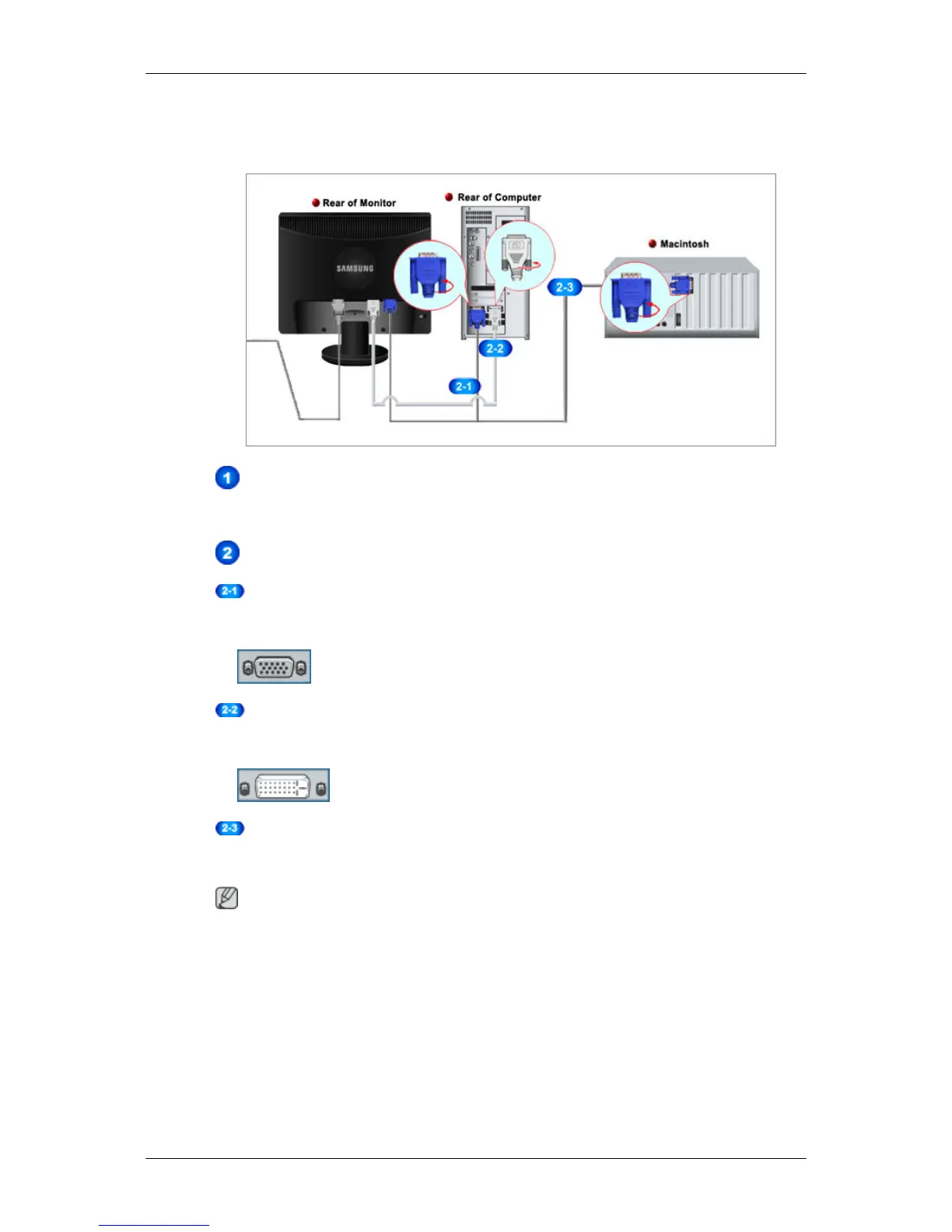 • Connect the monitor to the Macintosh computer using the D-sub connection cable.