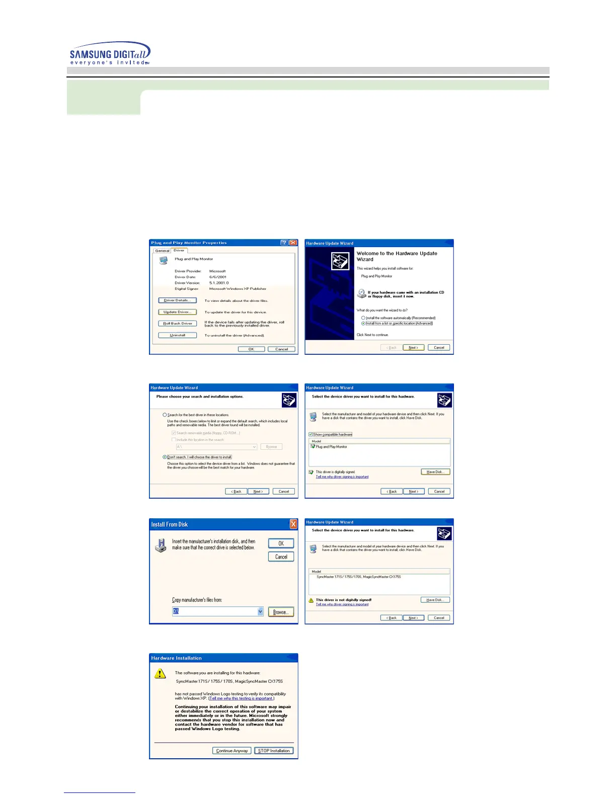 7. Pulse el botón “Examinar” luego escoja el A:\(D:\driver) y seleccione el modelo de su monitor