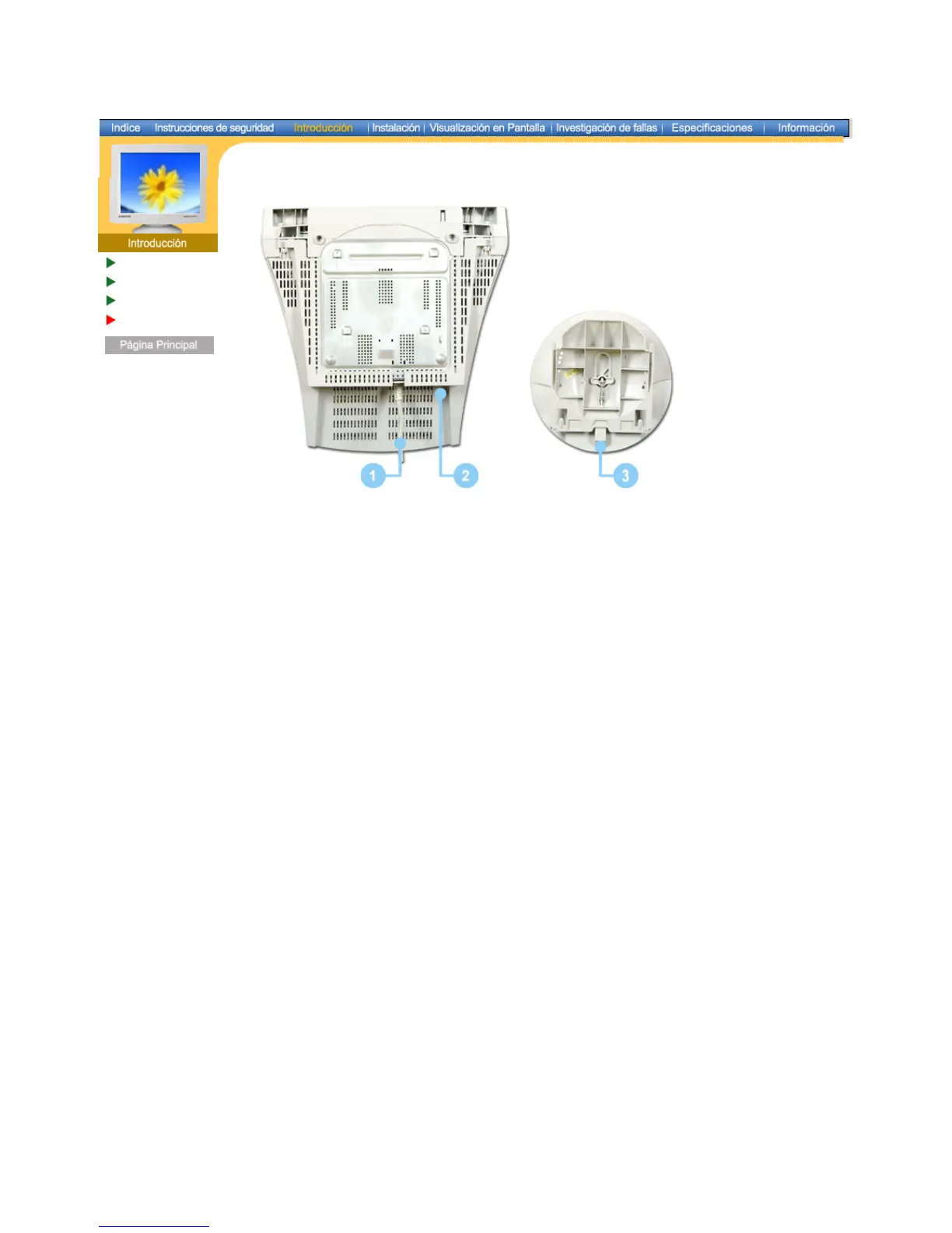 toma de corriente de la parte trasera del monitor.