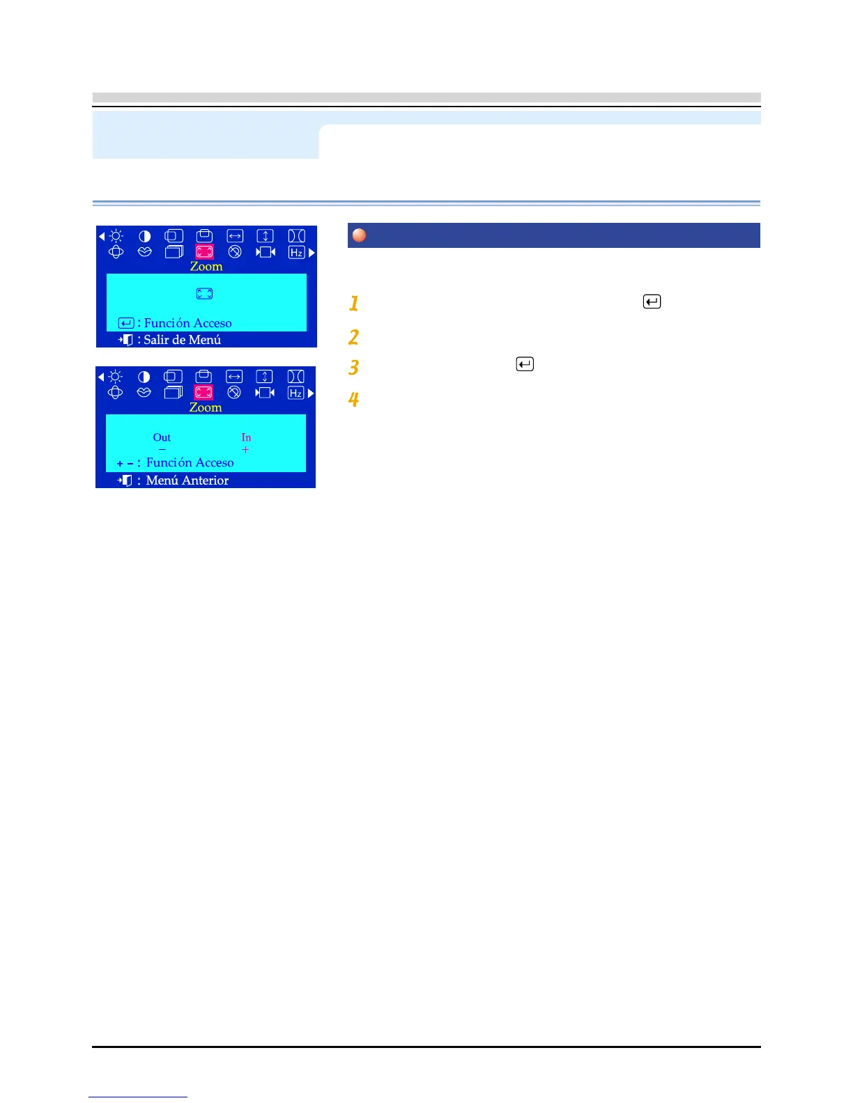 Pulsar el botón - o el + hasta que en la pantalla aparezca Zoom