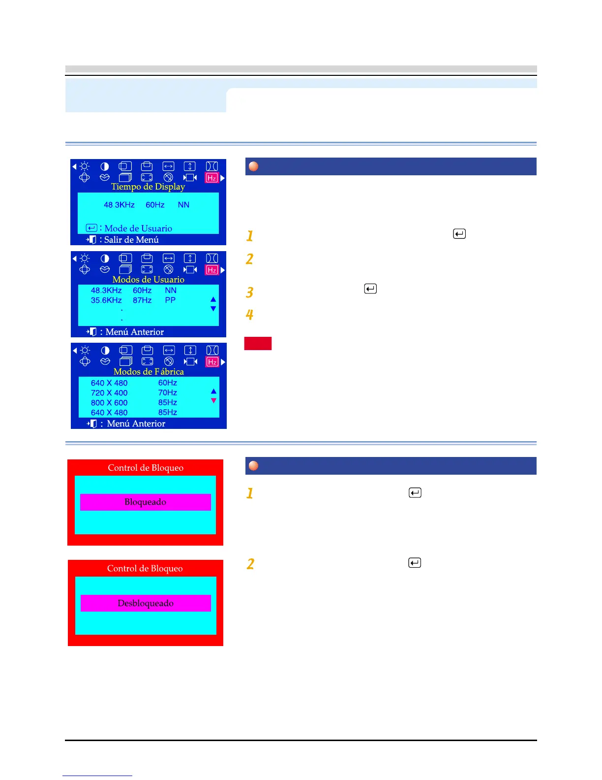 Pulsar el botón del menú para seleccionar el Tiempo de Display.