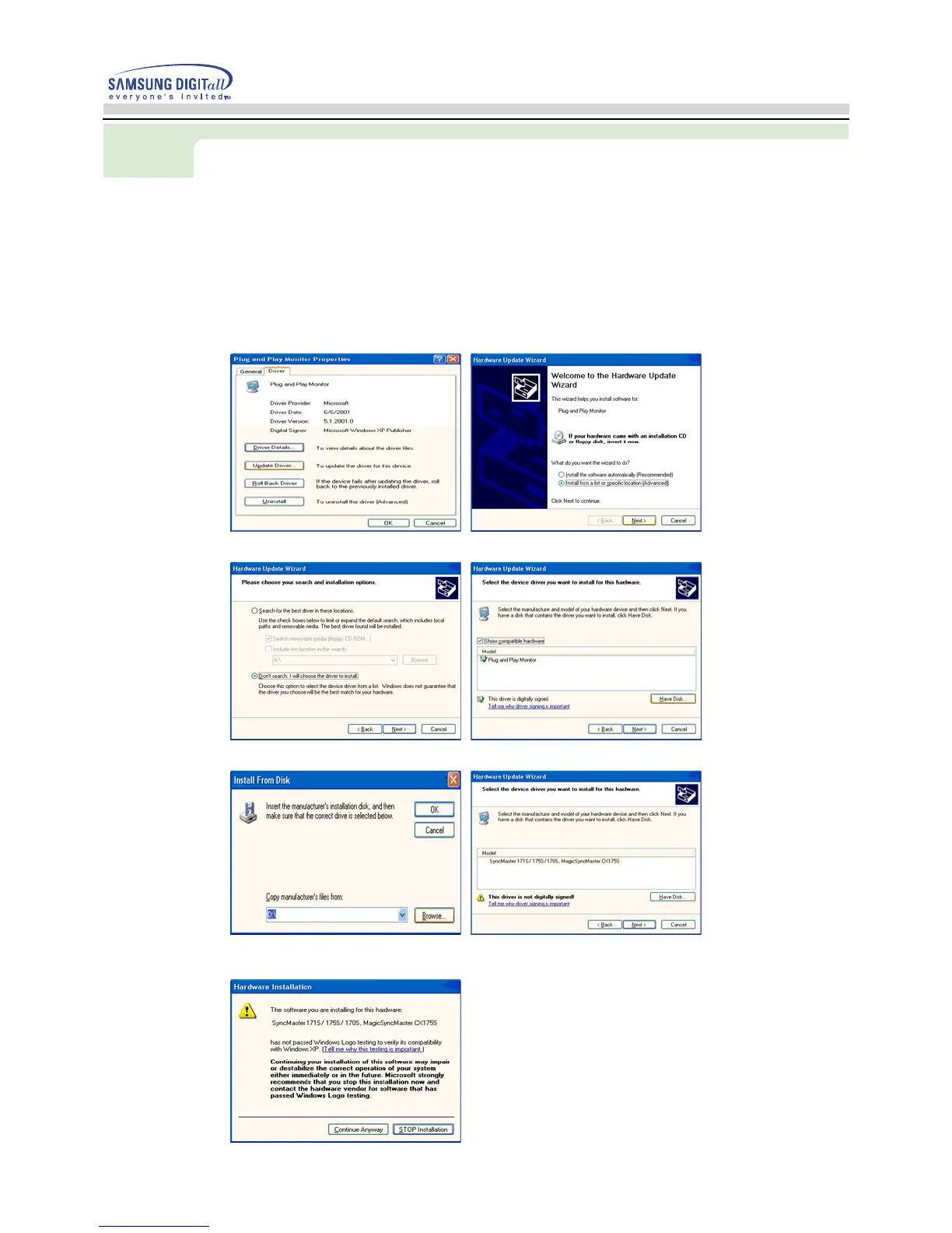 7. Click the "Browse" button then choose A:(D:\Driver) and choose your monitor model in the
