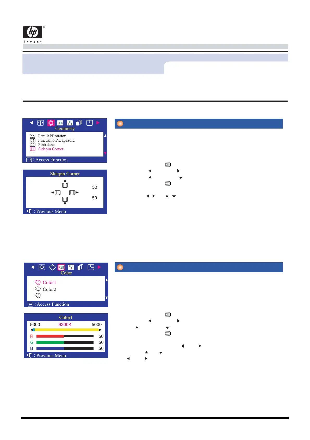 3 Push the Menu( ) button to open the SidePin Corner adjustment