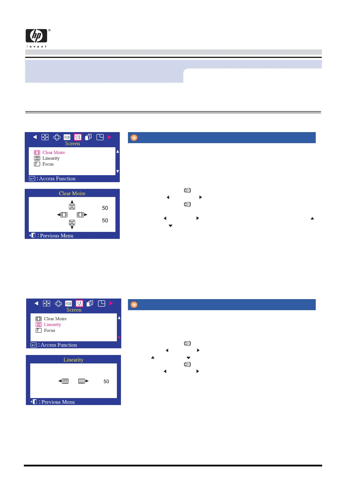 3 Push the Menu( ) buttonto open the Linearity adjustment screen.