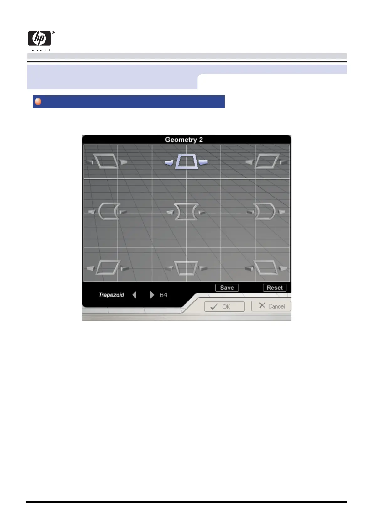 Then, click the left mouse button and the Trapezoid fine tuning sub-menu appears in the left bottom corner of