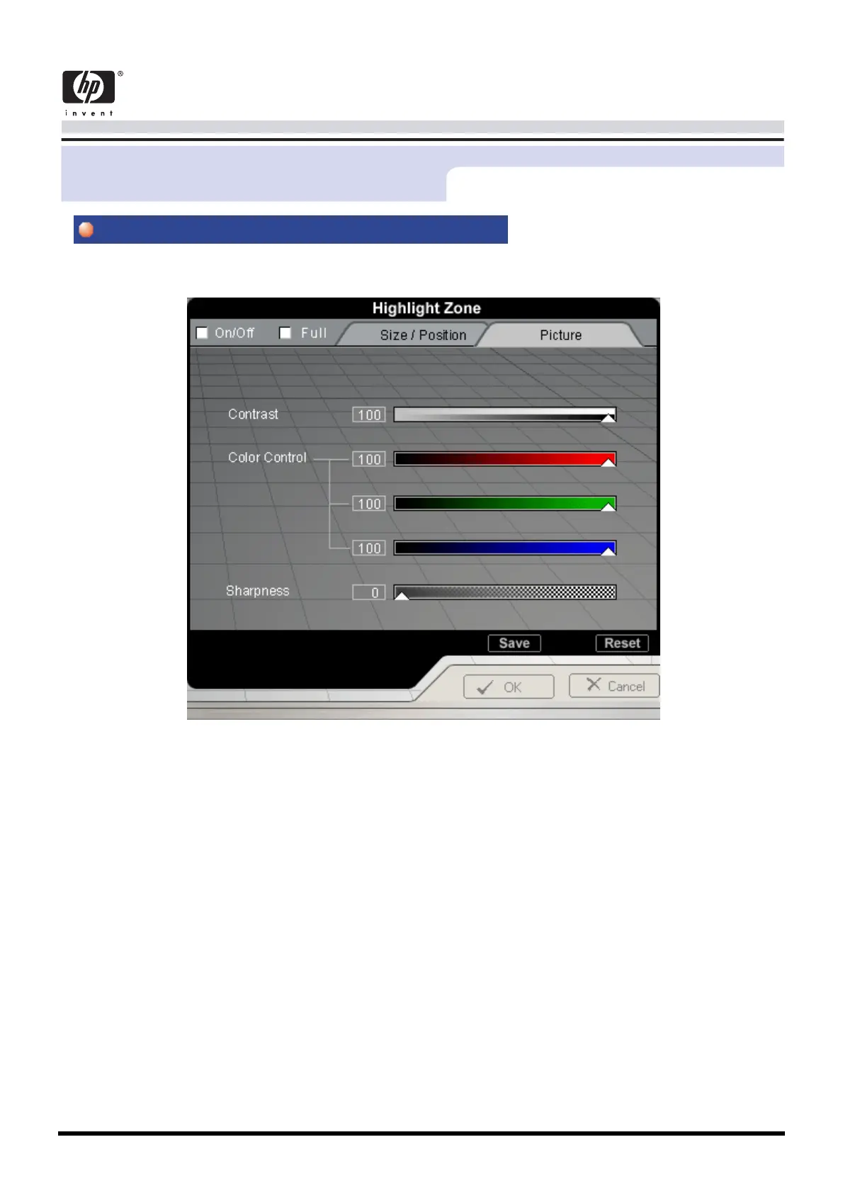 The Picture tab adjusts the Highlight Zone's contrast, color tone and outline. Place your mouse pointer on the