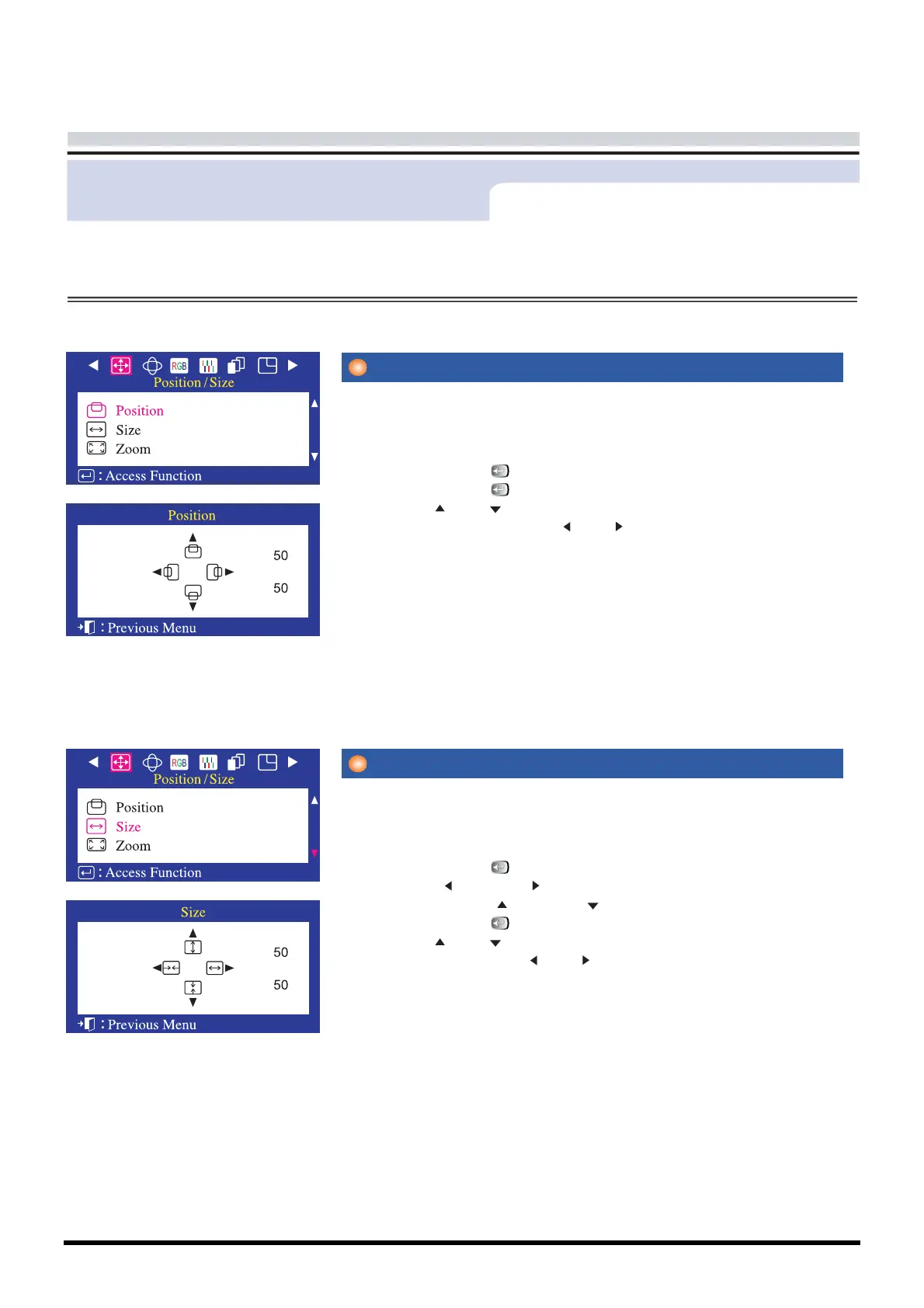 3 Push the Menu( ) button to open the Size adjustment screen.