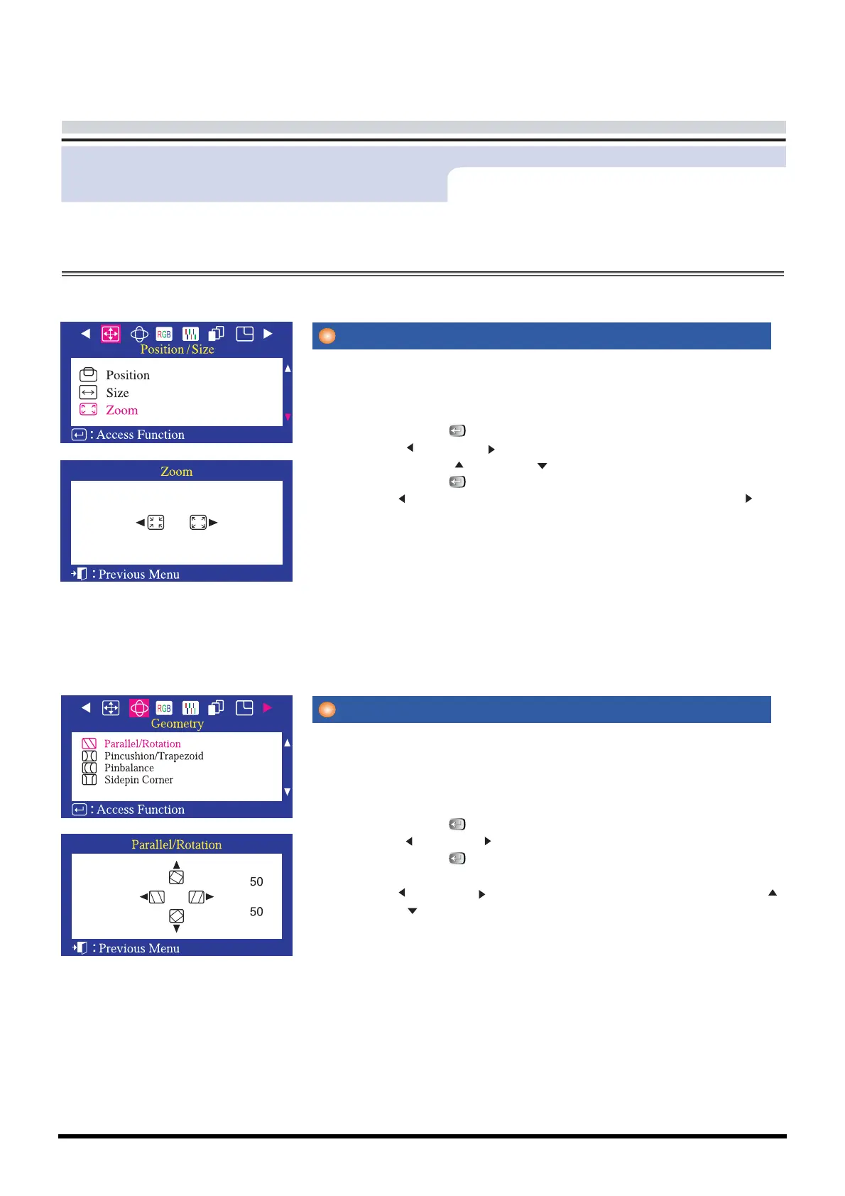 3 Push the Menu( ) button to open the Parallel/Rotation adjustment