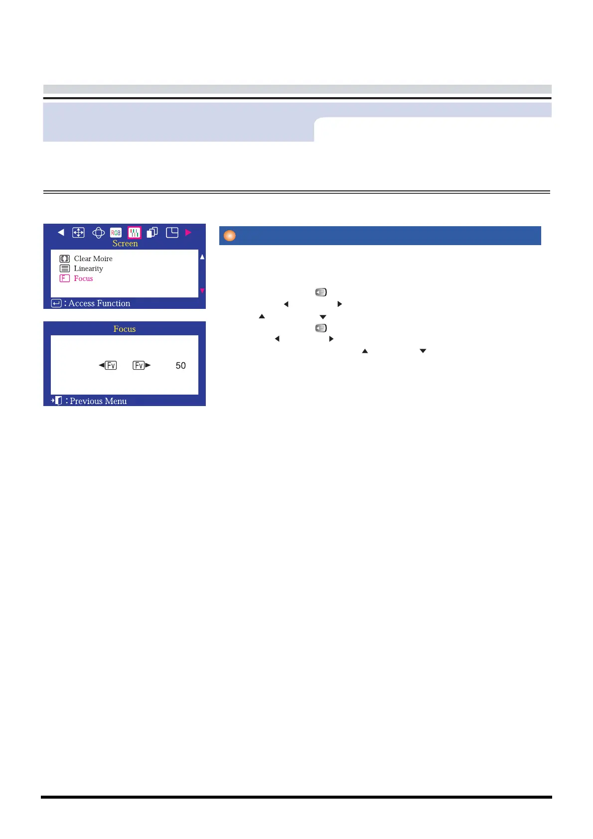 3 Push the Menu( ) button to open the Focus adjustment screen.