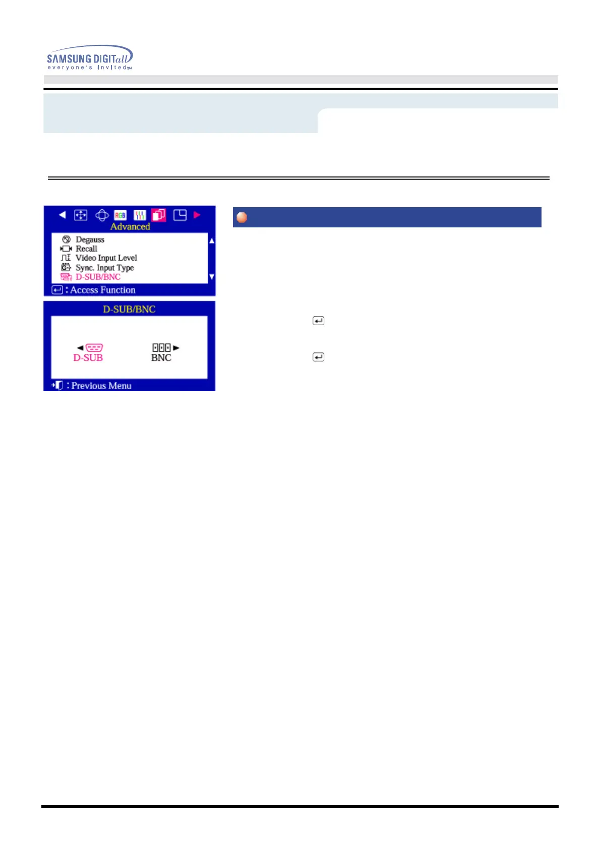 3 Push the Menu ( ) button to open the D-SUB/BNC selection screen.