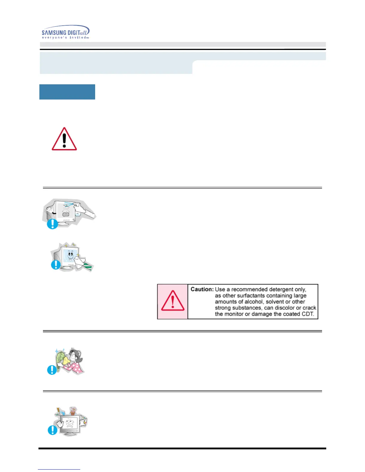 Do not spray detergent directly on the monitor.