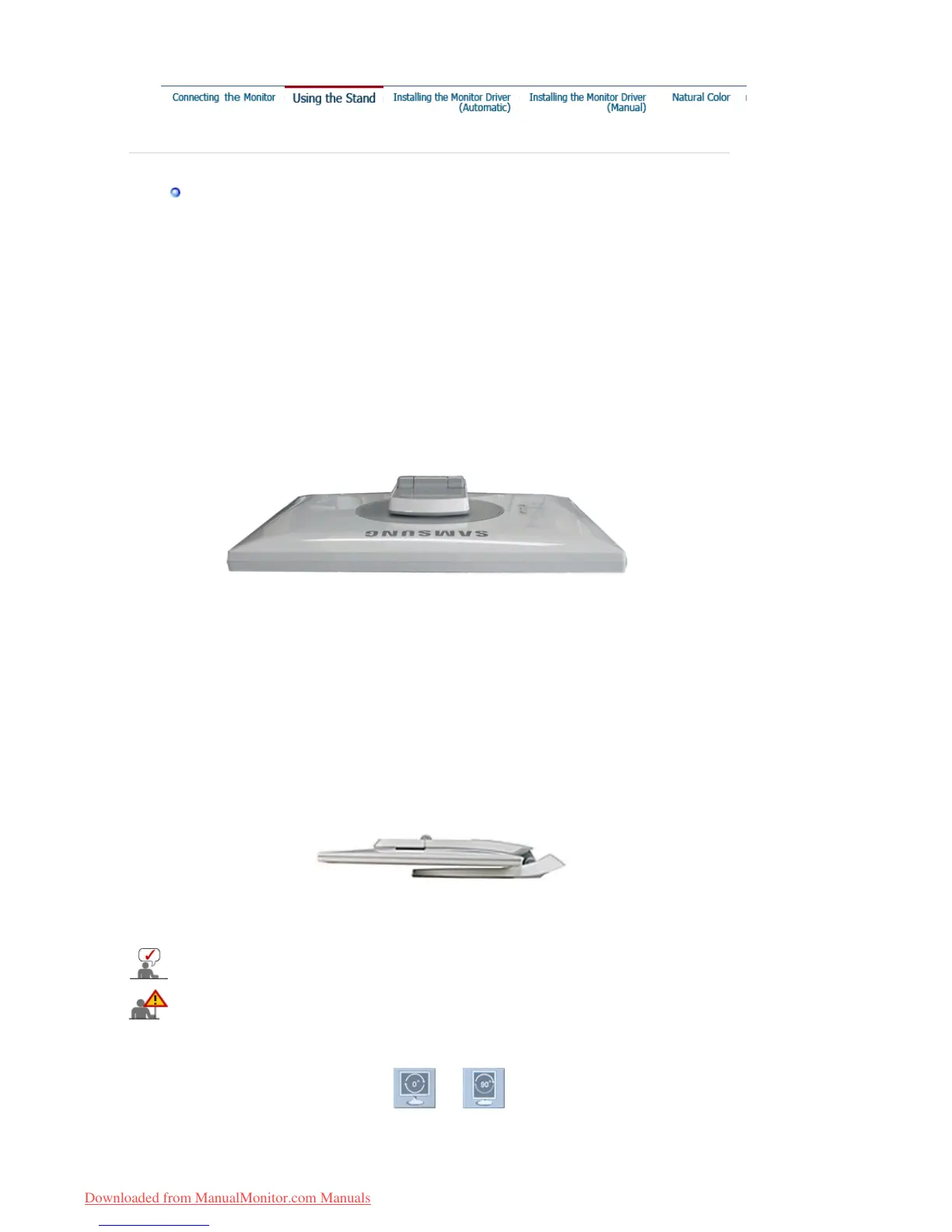 When pivoting the monitor, the corner of the monitor may reach to the floor. Tilt the monitor