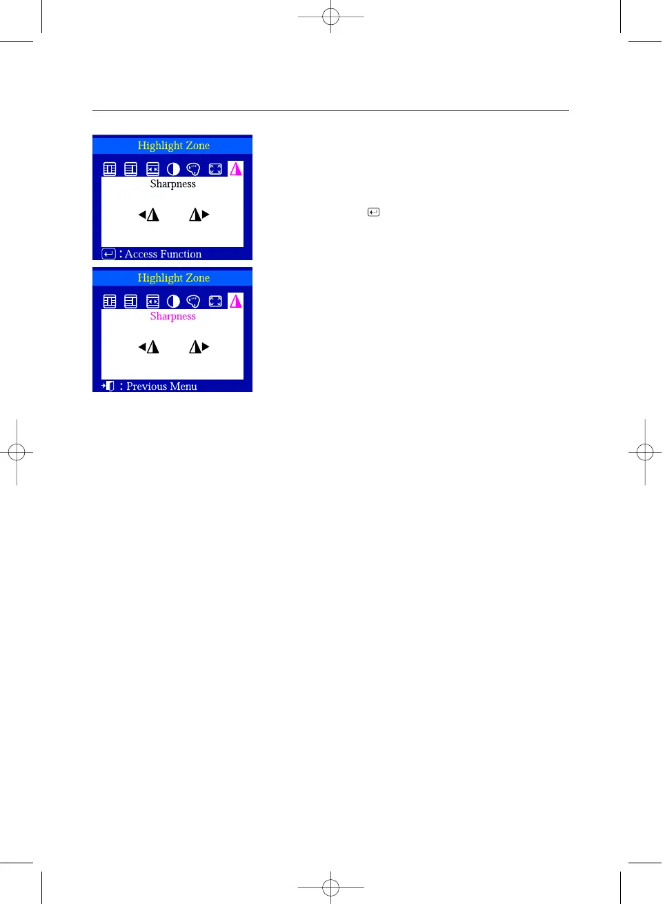 2 AÁn phím hoaëc ñeå choïn maøn hình Sharpness vaø sau ñoù
