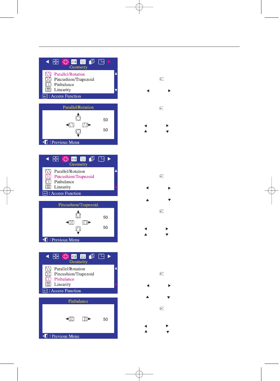3 Push the Menu ( ) button to open the Pincushion/Trapezoid