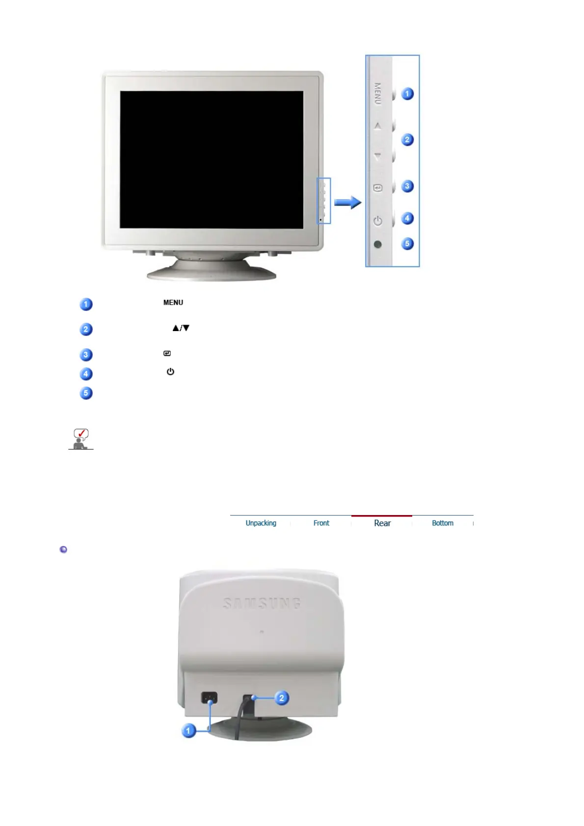 (The configuration at the back of the monitor may vary from product to product.)