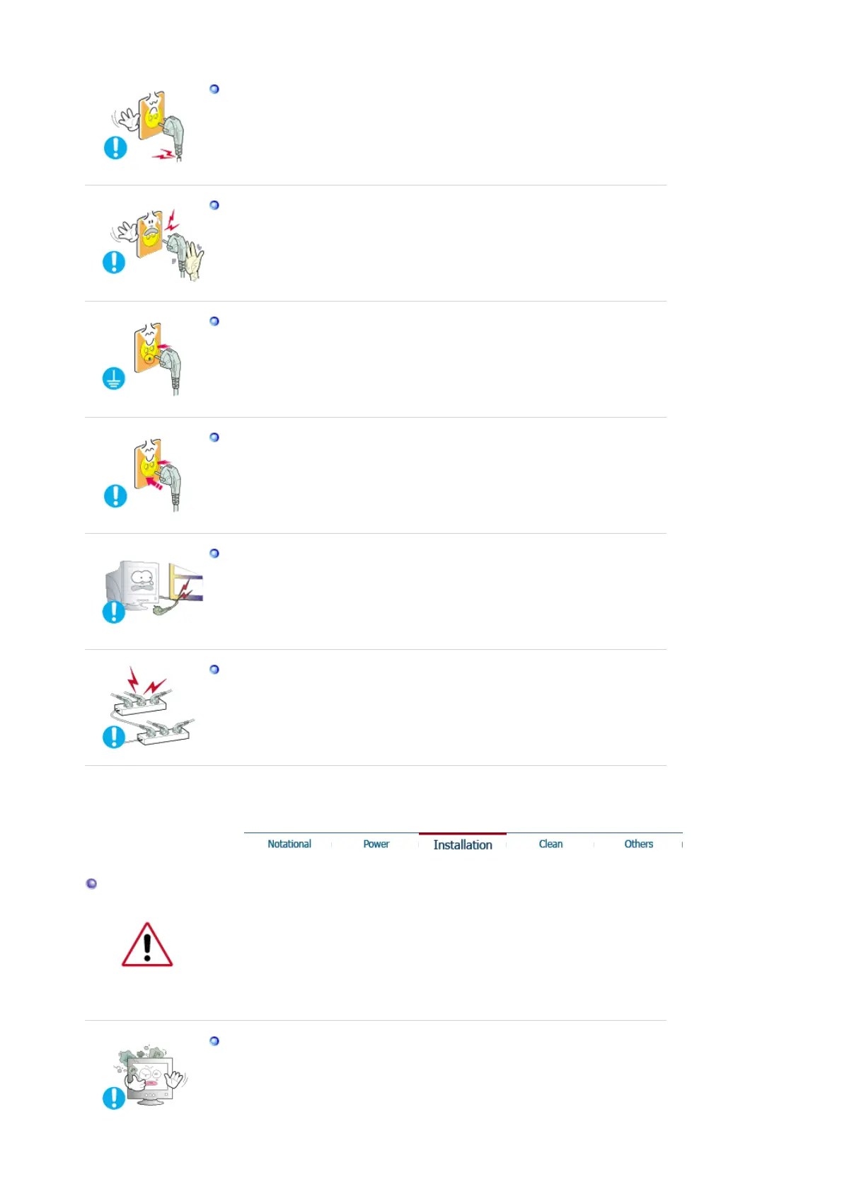 z Failure to do so may cause an electric shock or fire inside the monitor.