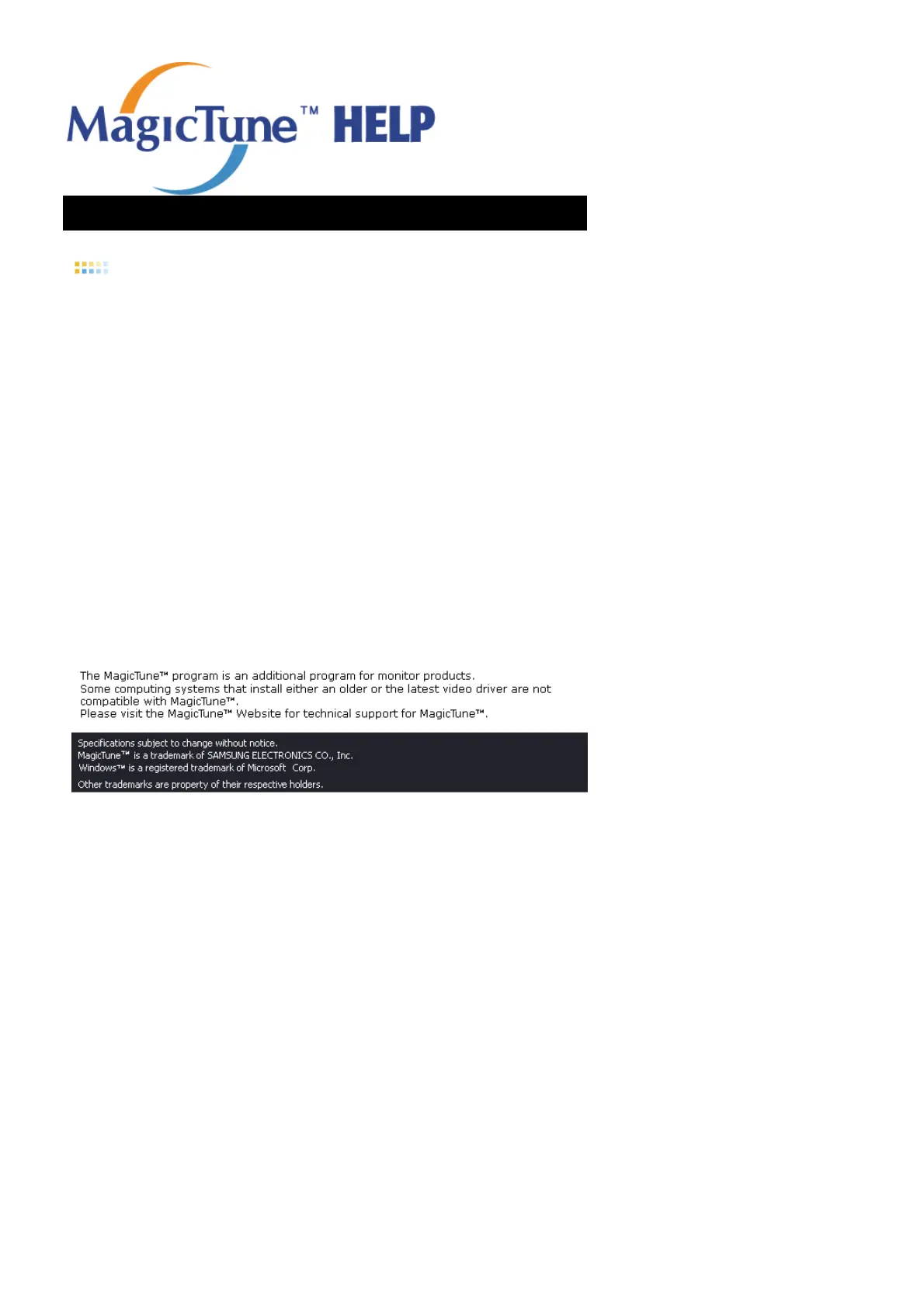 The MagicTune™ program can be removed only by using the "Add or Remove Programs" option of the