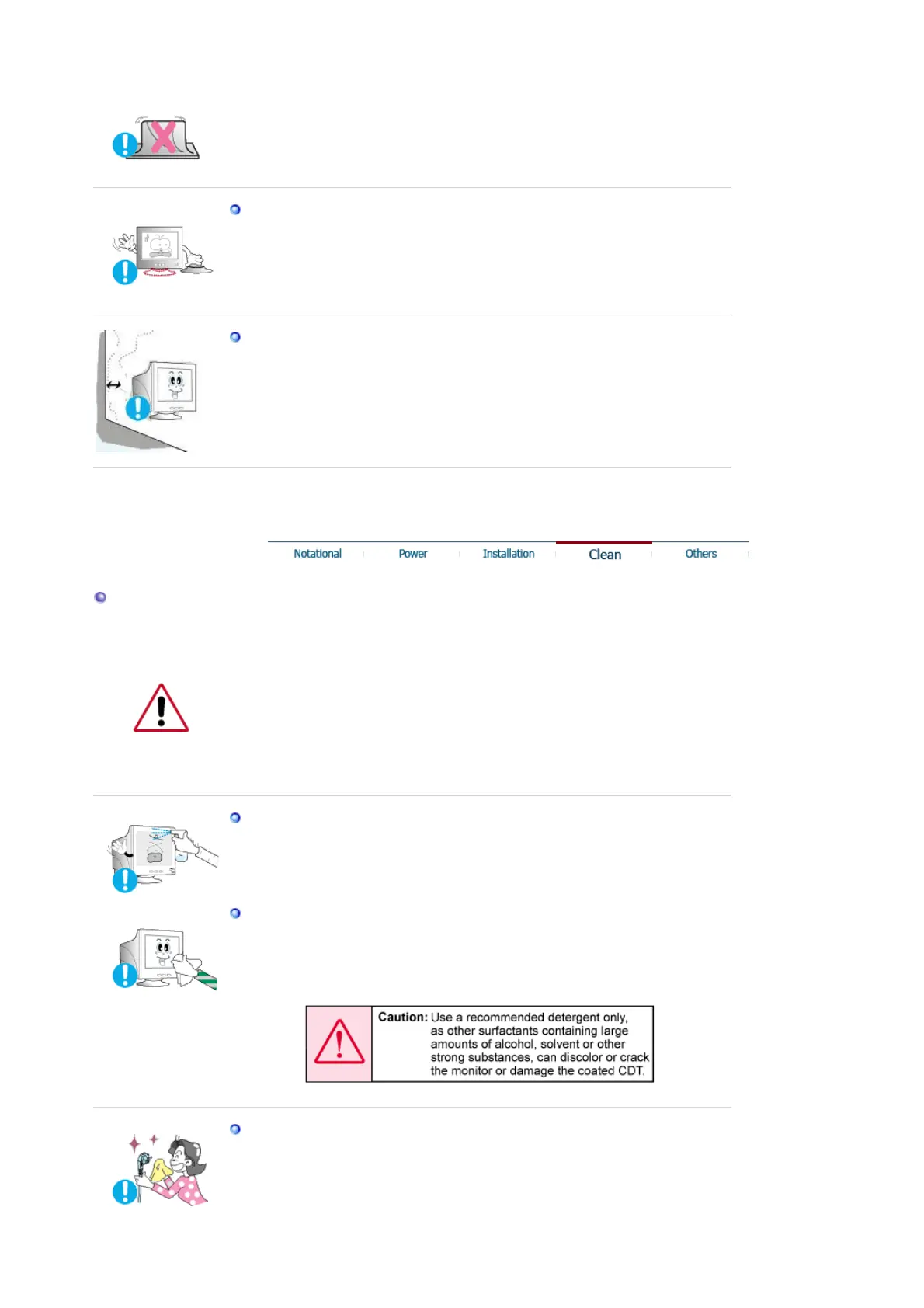 When cleaning the monitor case or the surface of the CDT, wipe with a slightly