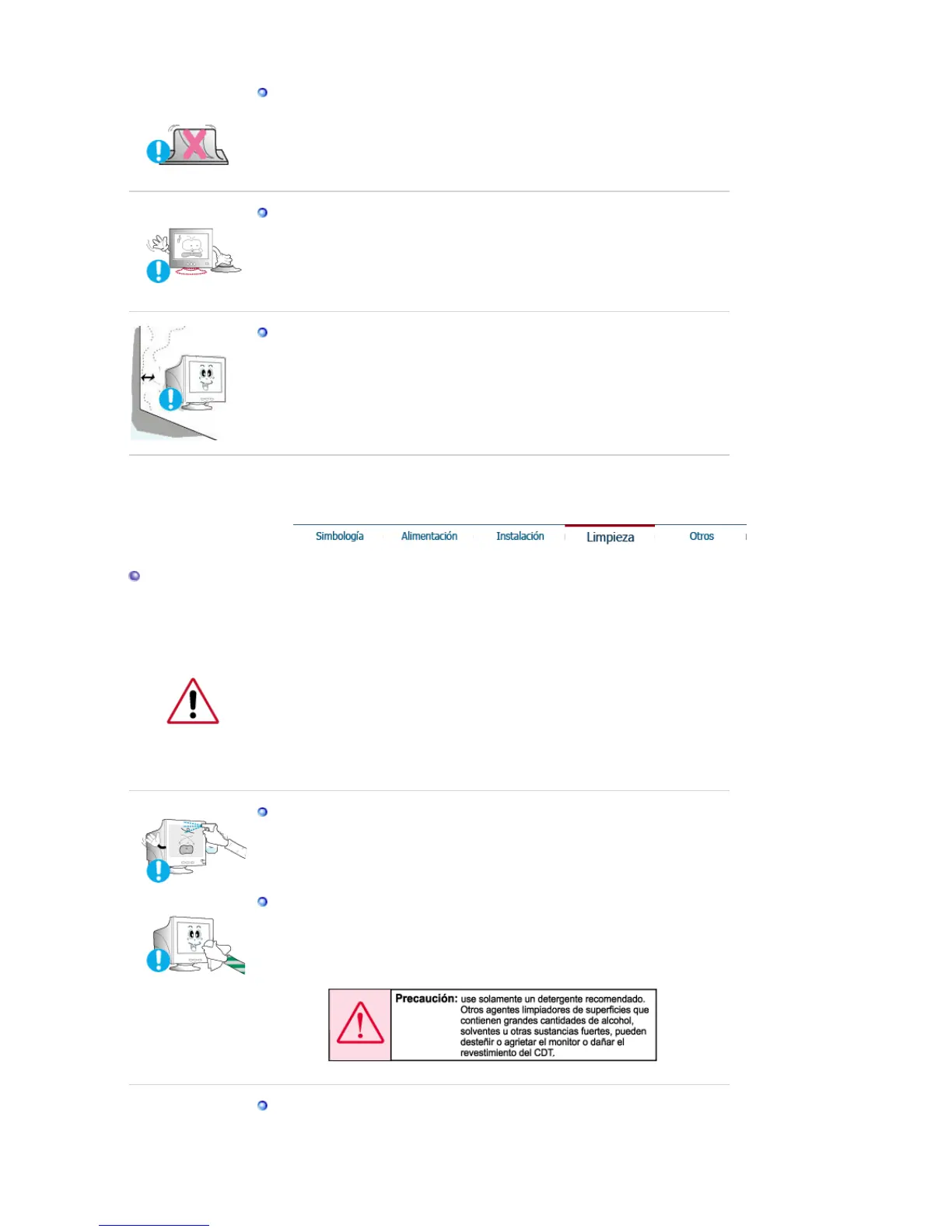 Cuando limpie la caja del monitor o la superficie del CDT, limpie con una tela