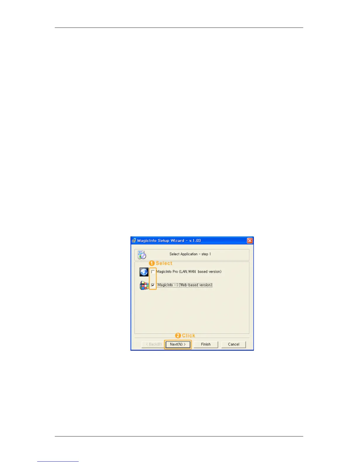 • To setup MagicInfo on a Windows screen, refer to the MagicInfo Server Help.