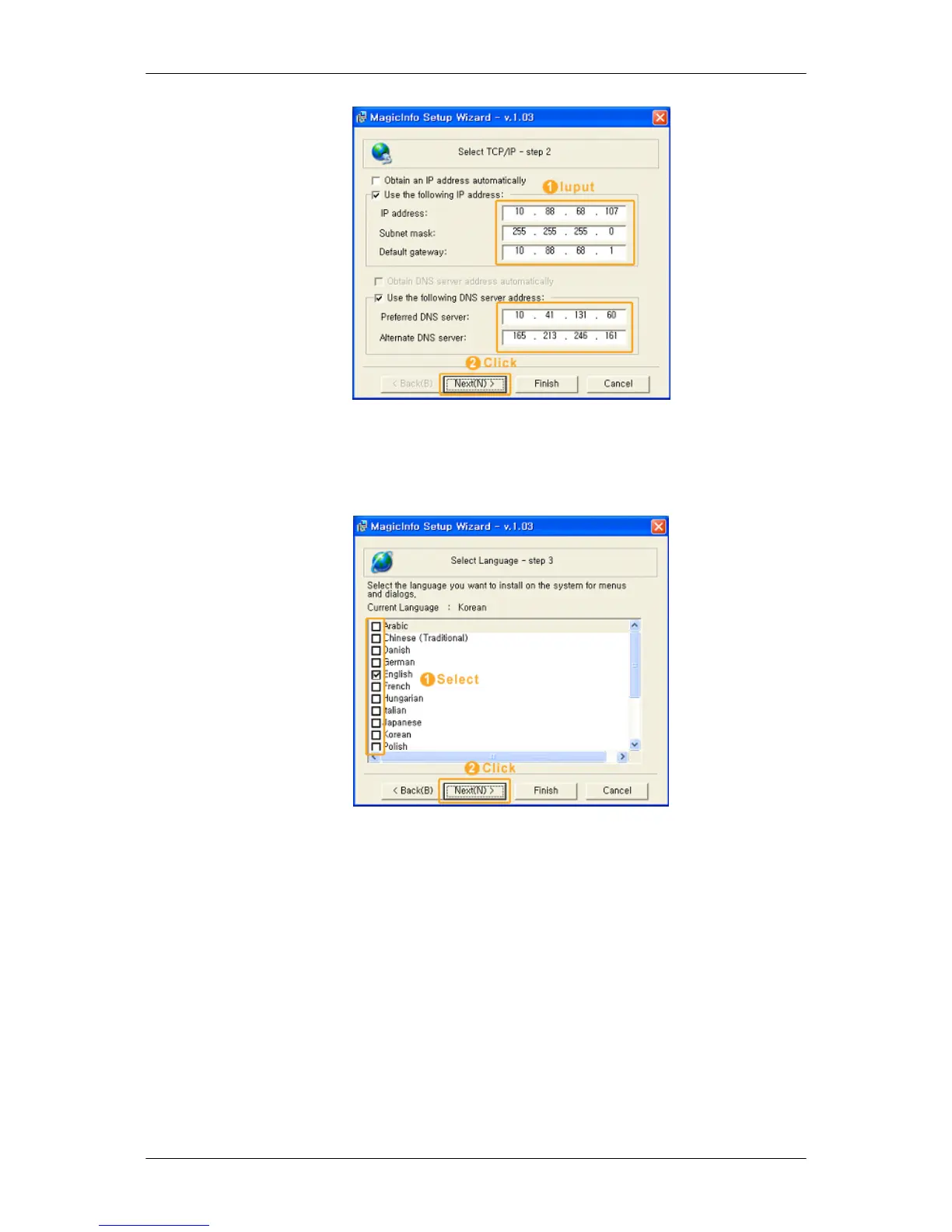 to make your settings for TCP/IP. You just do that at step 2 of MagicInfo installation.