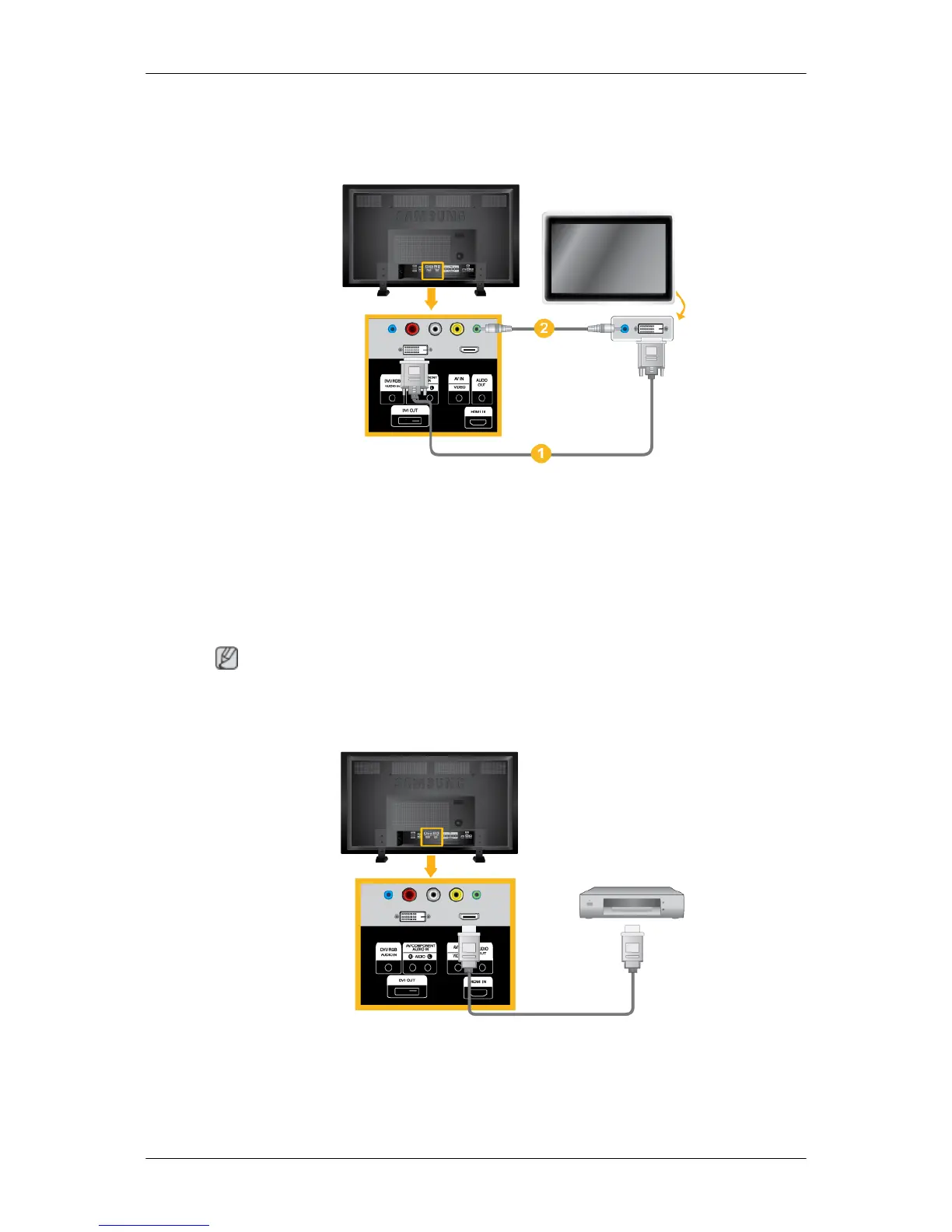 1. Connect input devices such as a Blu-Ray/DVD player to the HDMI IN terminal of the LCD