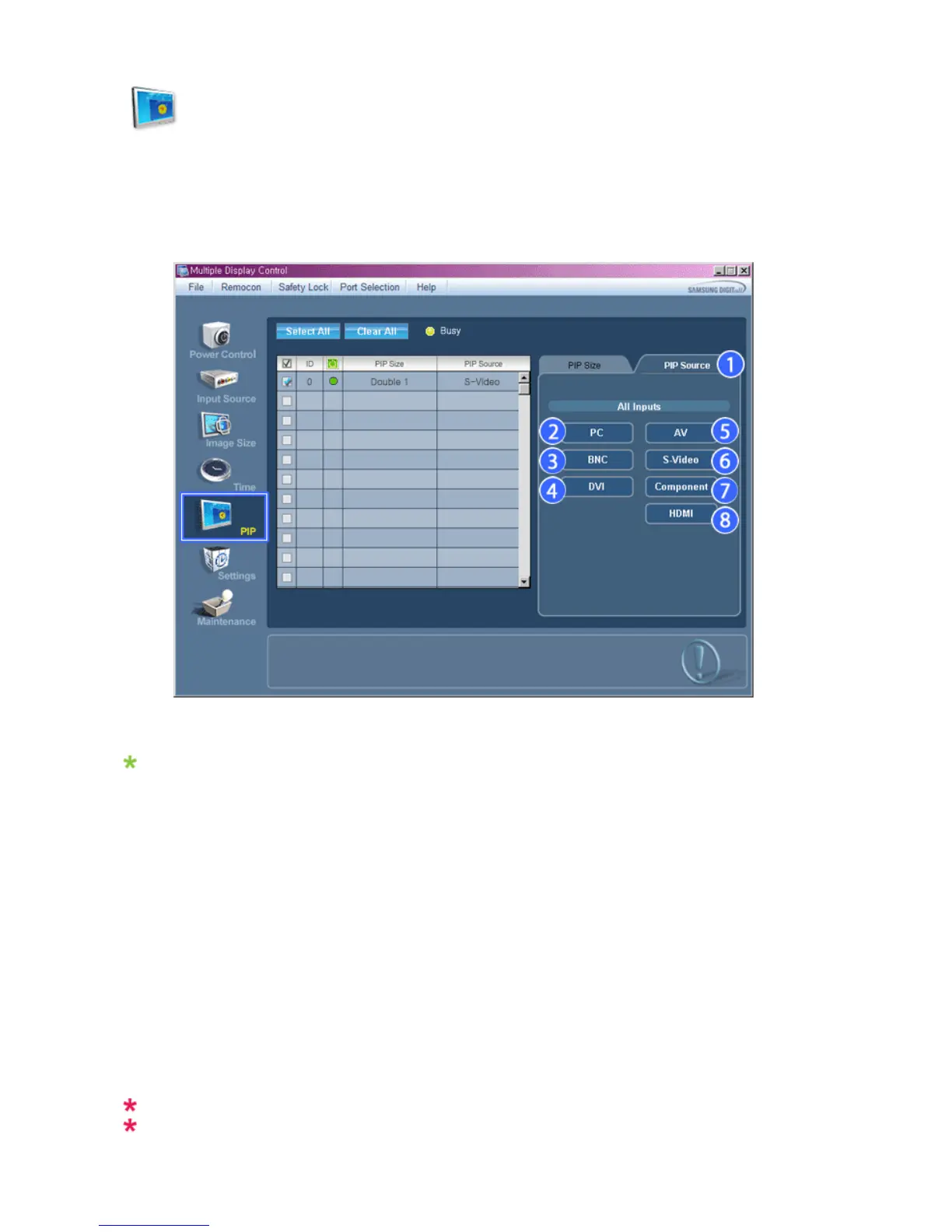 The PIP Control feature is available only for the displays whose power status is ON and the PIP