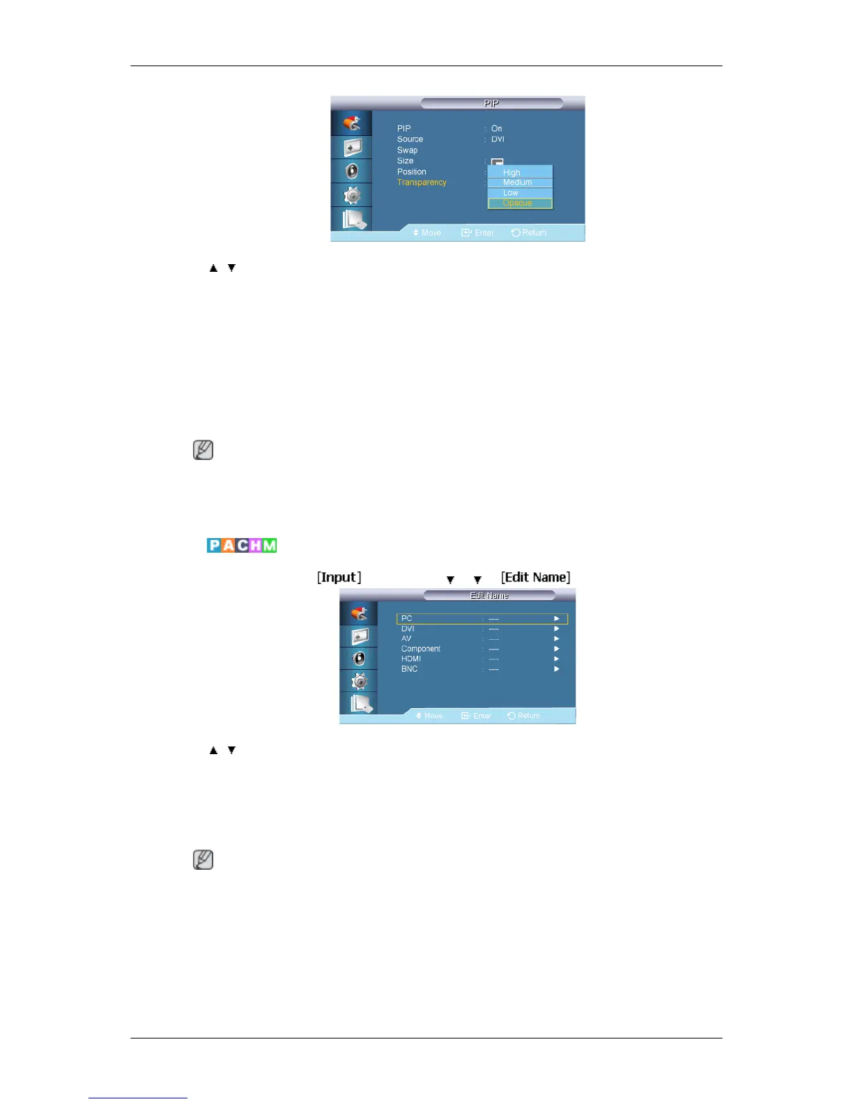 • When connecting a PC to the HDMI or DVI terminal, set Edit Name to PC. In other cases,