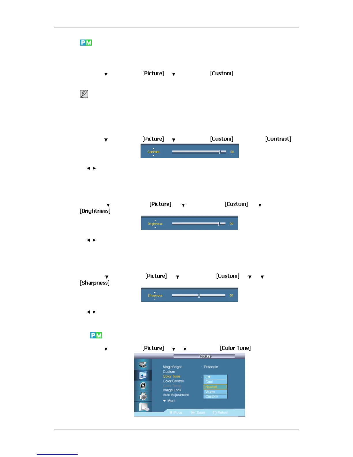 By adjusting the picture using the Custom function, MagicBright will change to Custom