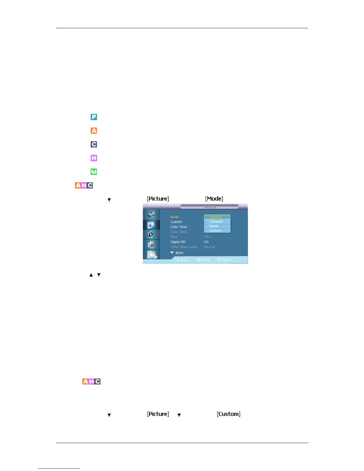 The LCD Display has four automatic picture settings ("Dynamic", "Standard", "Movie" and