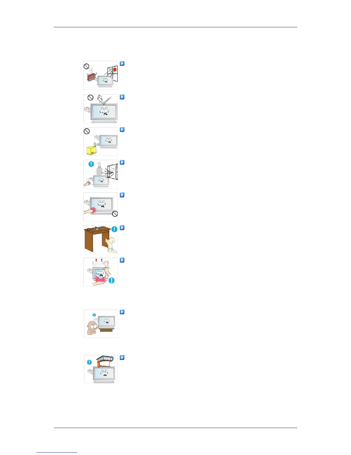 Do not drop any objects onto the product or cause any impact