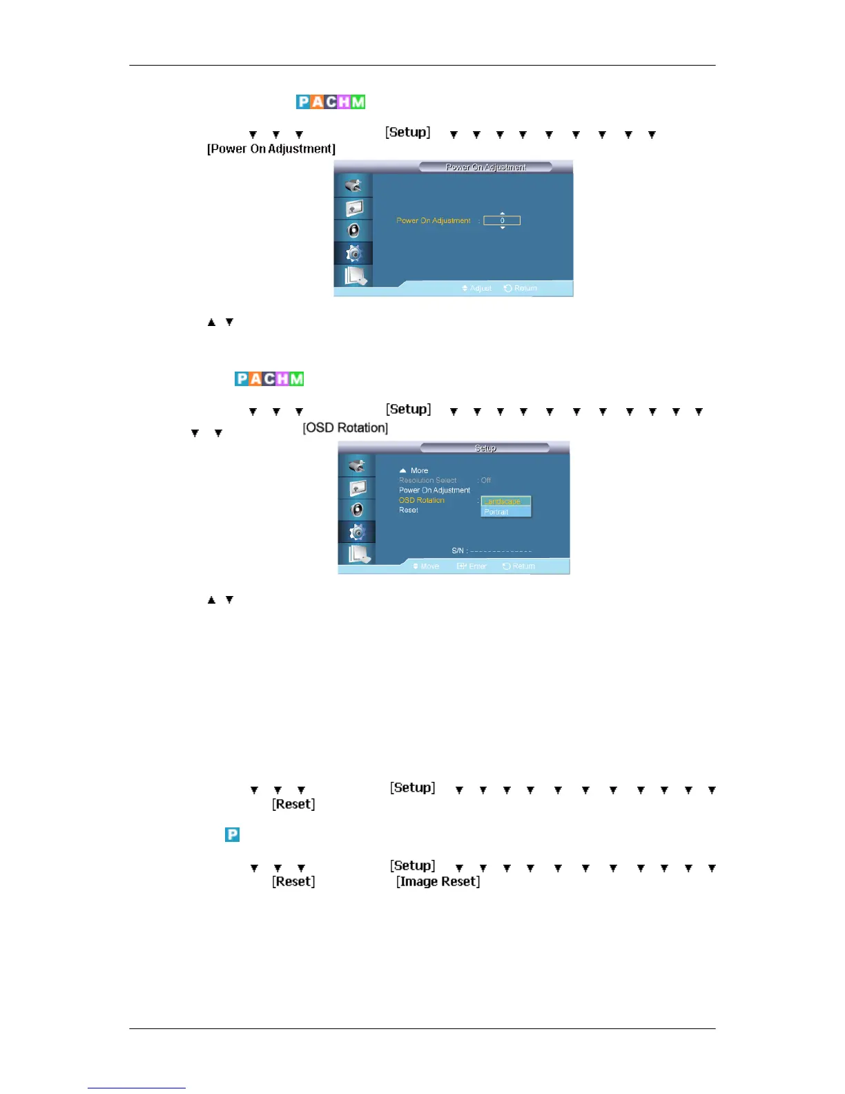 Reverts the product settings to factory defaults. The Reset function is only available when
