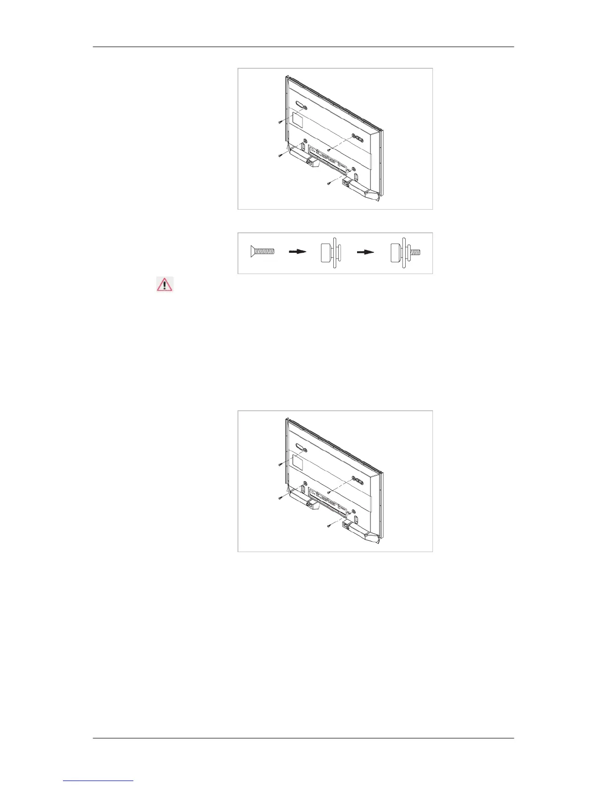 3. Tighten the 4 screws in step 2 (plastic hanger + screw B)to the rear holes of the product.