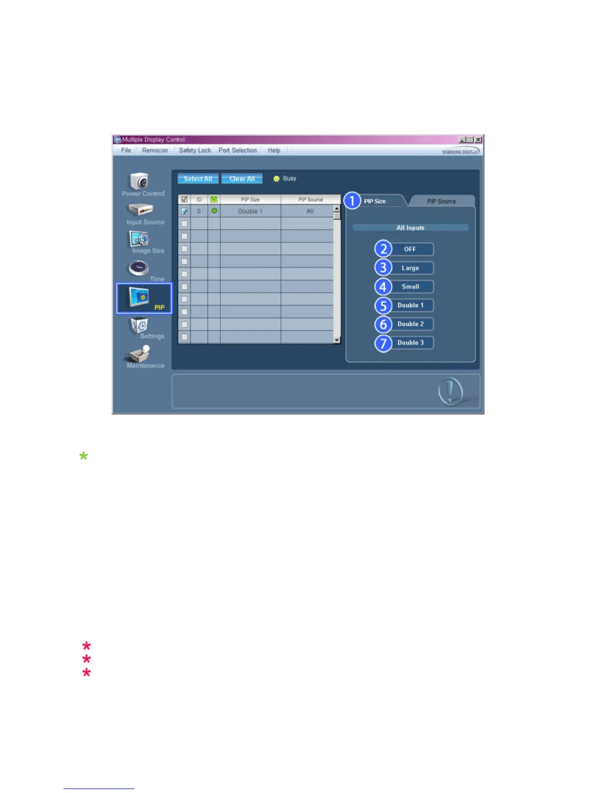 - Turns on the PIP of the selected display and changes the size to Double 2.