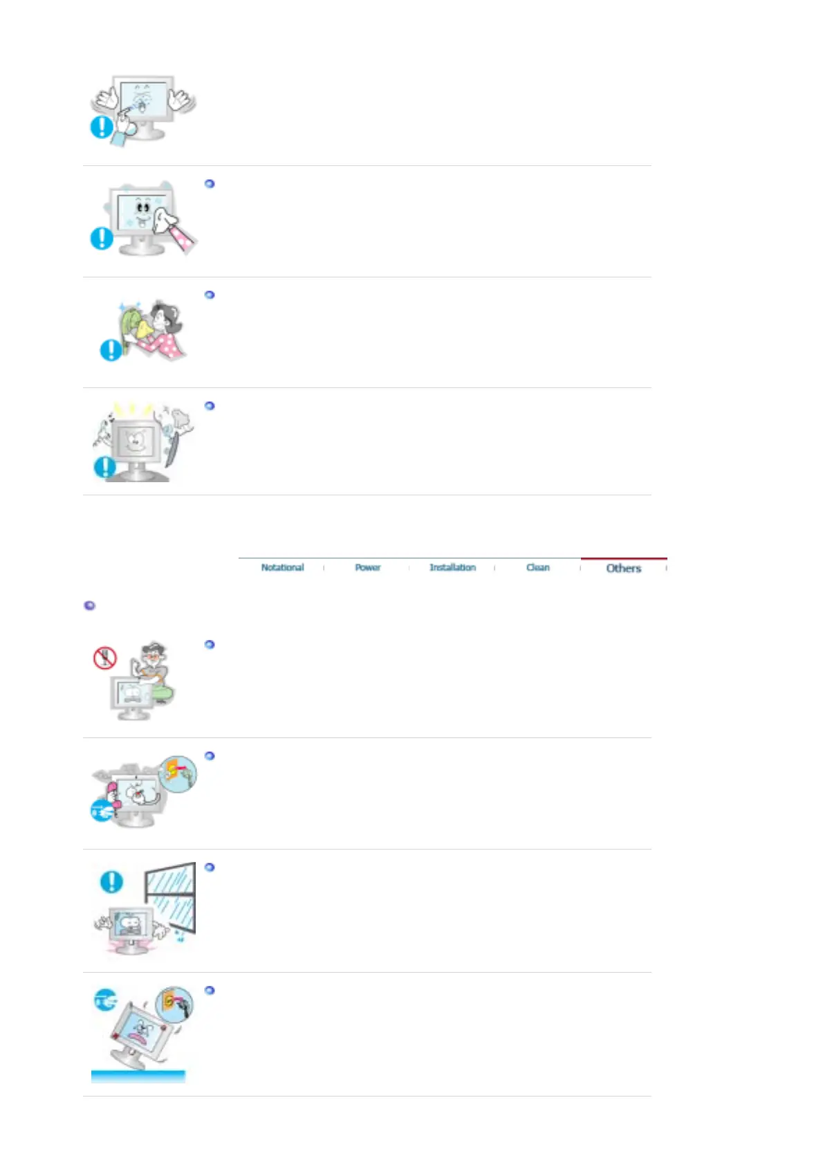 Be careful not to let water drip into the monitor or expose the monitor to