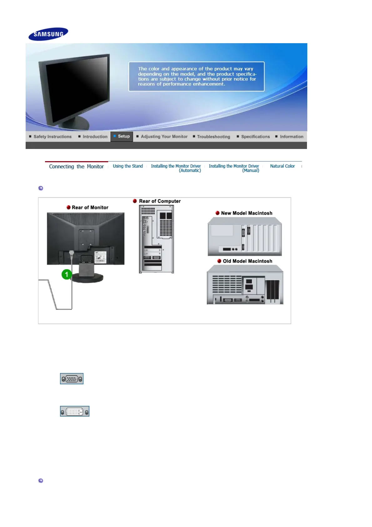 Connect the monitor to the Macintosh computer using the D-sub connection cable.