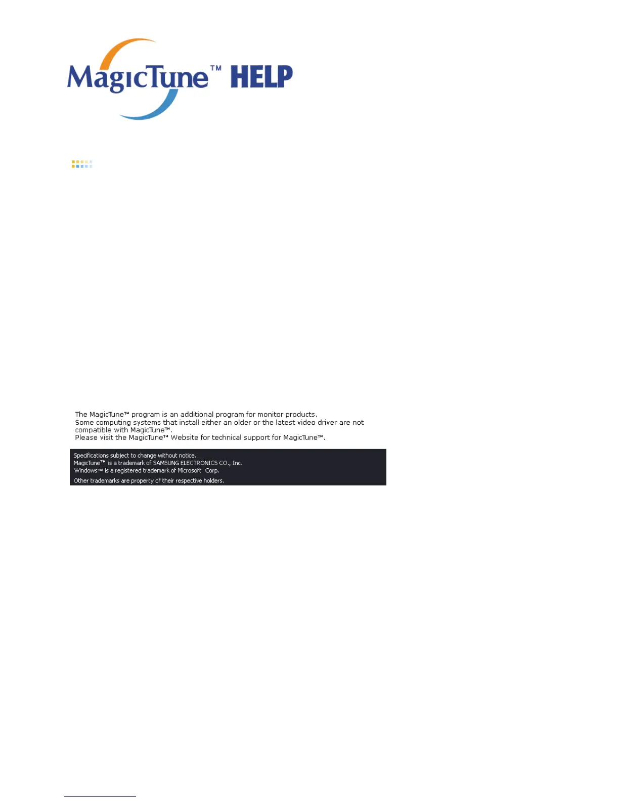 The MagicTune™ program can be removed only by using the "Add or Remove Programs" option of the