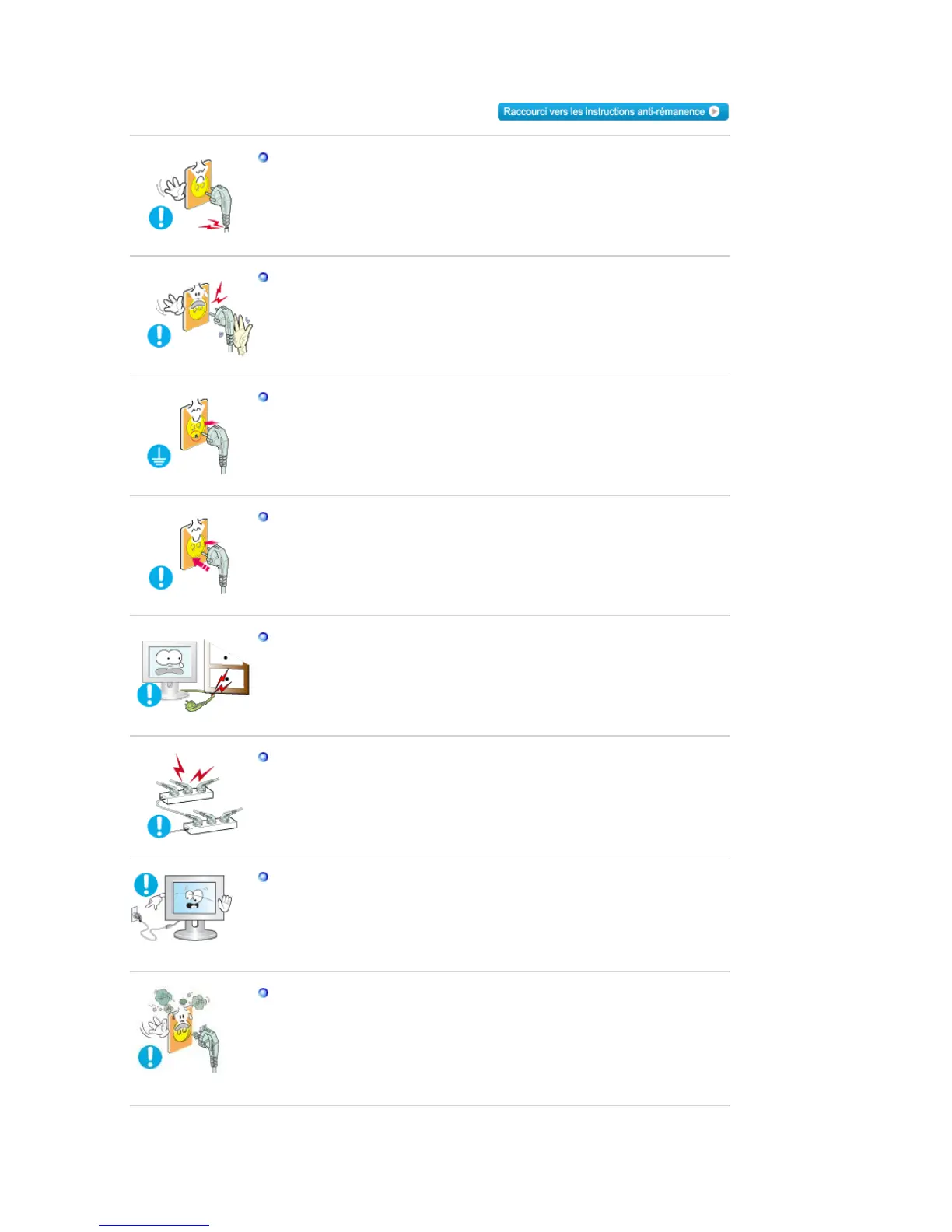 z Ne pas brancher trop de multiprise ou de câbles à la prise de courant.
