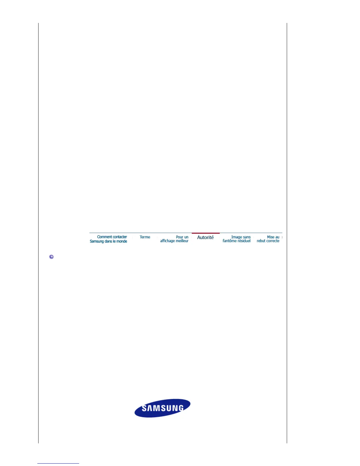 Samsung Electronics Co., Ltd.n'est pas responsable pour des dommages s ou accidents pour une